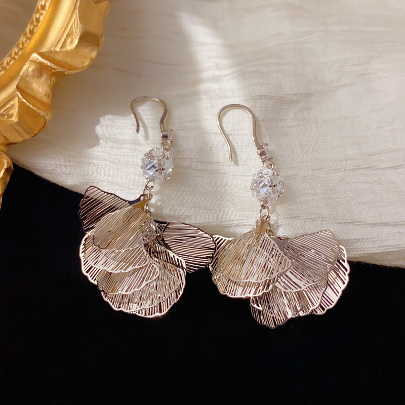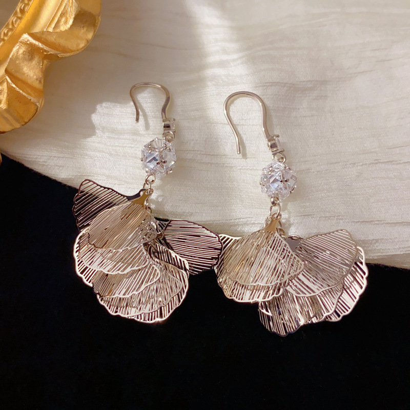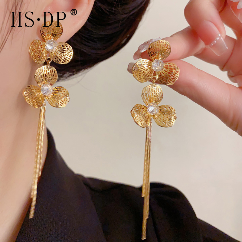 亚马逊跨境个性夸张金属镂空花瓣长款流苏耳坠女复古显瘦耳饰批发
