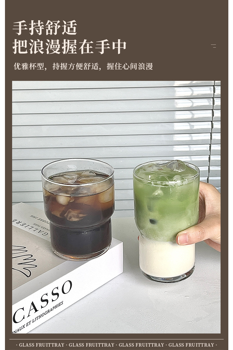 高硼硅耐热玻璃杯家用喝水杯咖啡杯牛奶杯高颜值拿铁杯竖纹冷萃杯