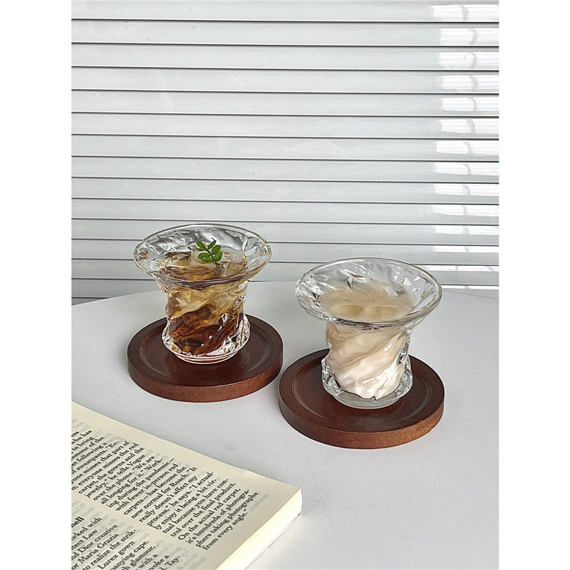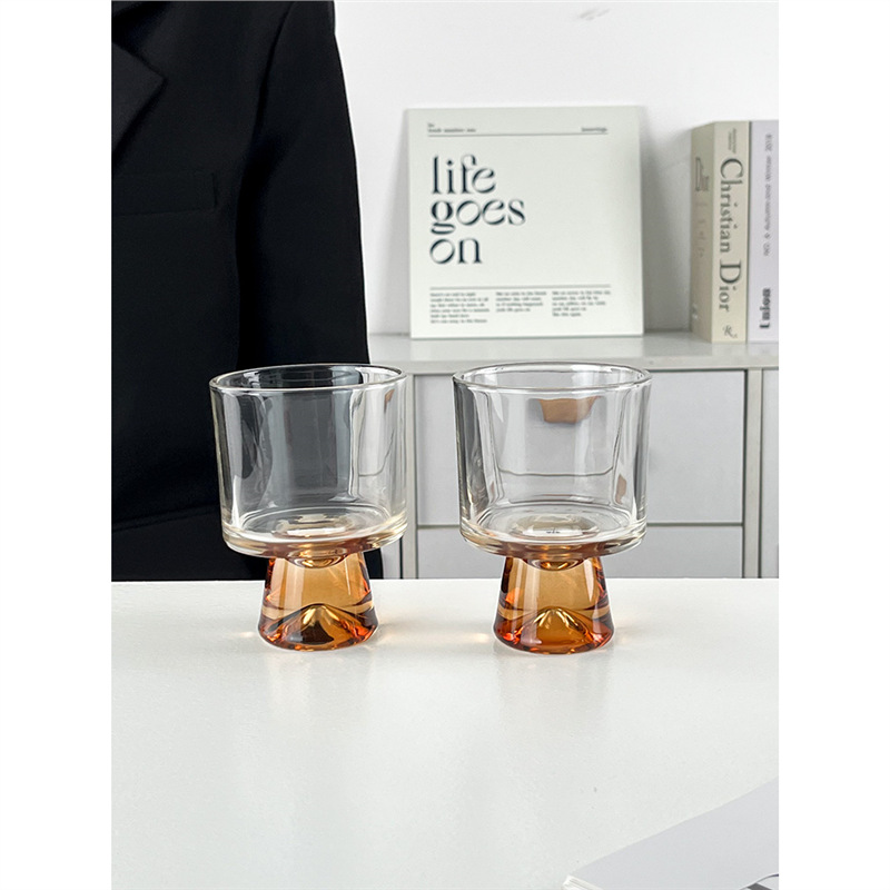 小众复古矮脚收腰玻璃杯ins风美式咖啡杯特调饮品杯冷饮杯果汁杯