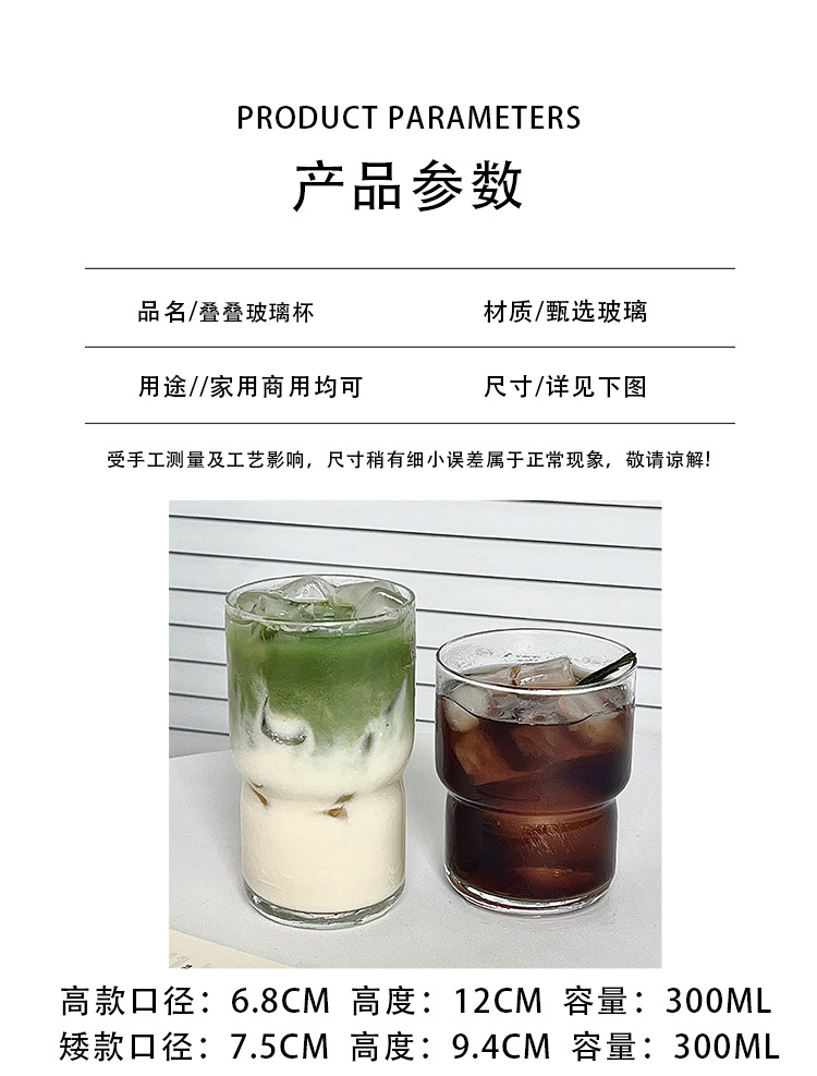 美式可叠玻璃杯西餐厅饮料杯果茶杯酒吧啤酒杯拿铁咖啡杯洋酒杯