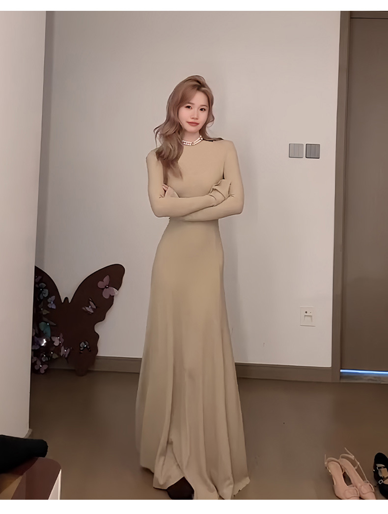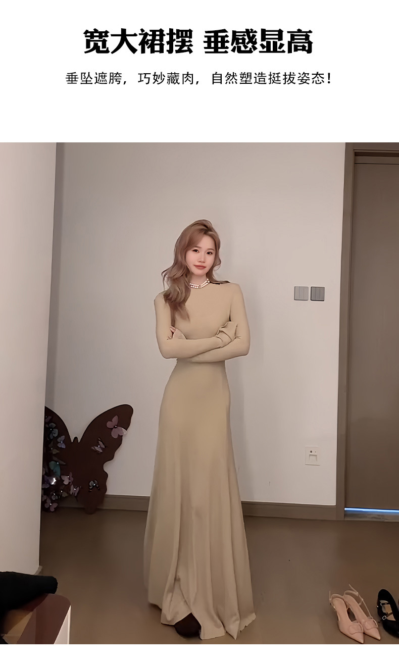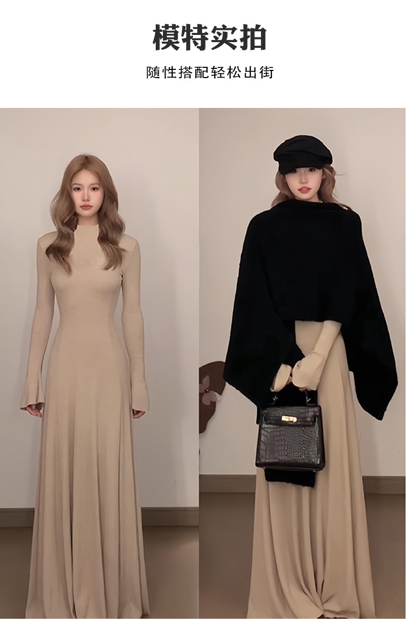 喇叭长袖针织收腰连衣裙女秋冬大风衣内搭打底包臀长裙子早秋穿搭