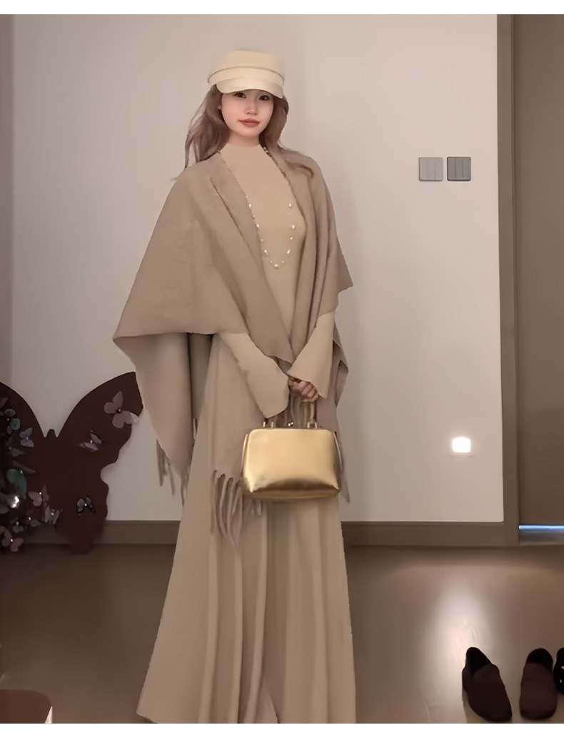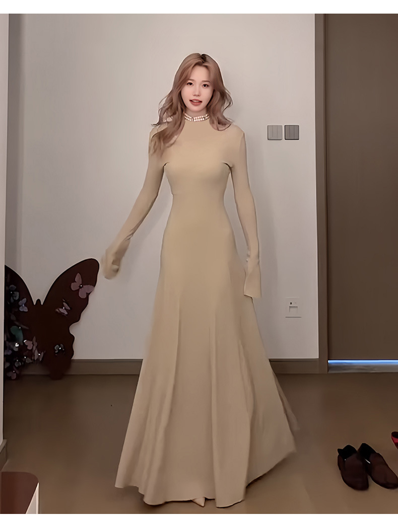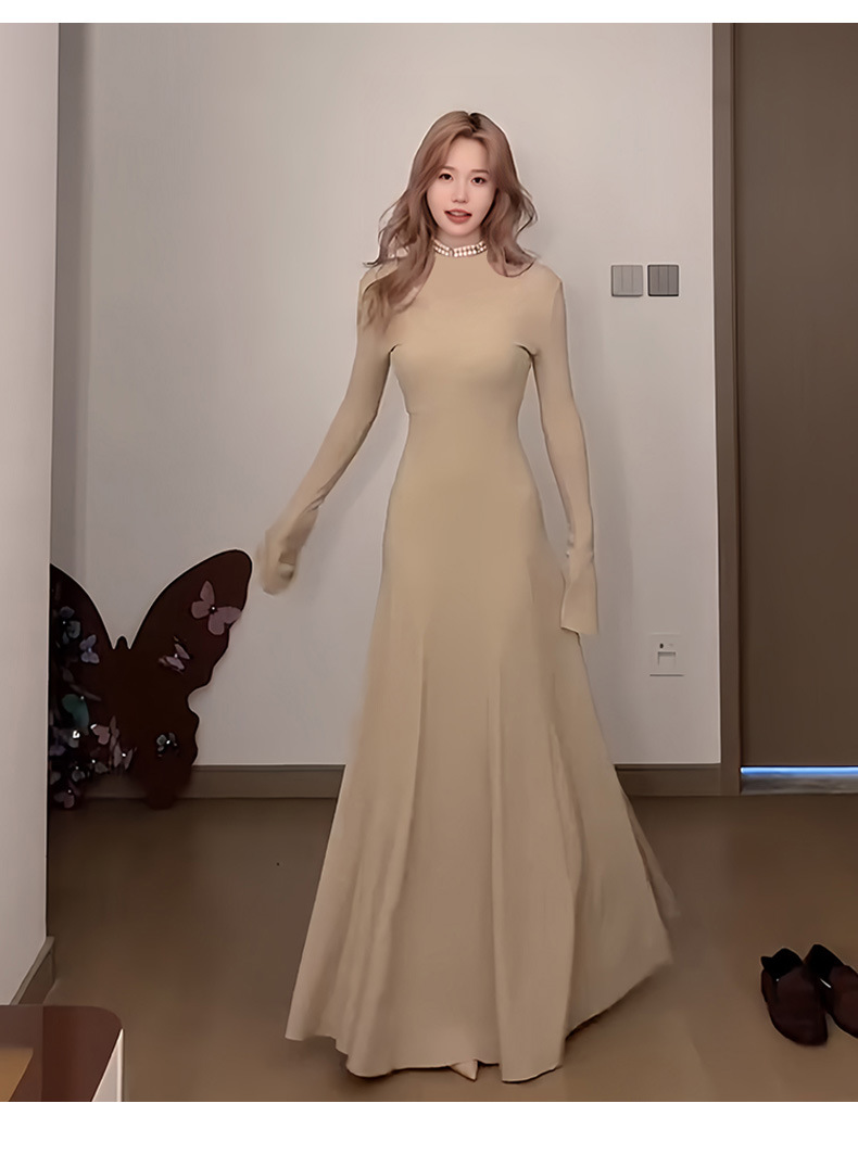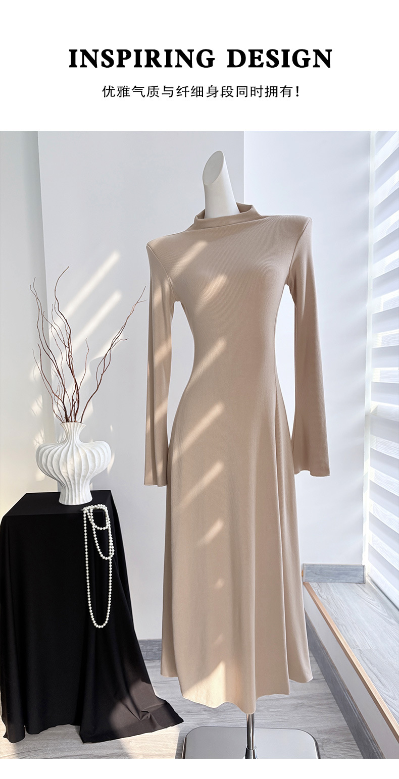 喇叭长袖针织收腰连衣裙女秋冬大风衣内搭打底包臀长裙子早秋穿搭