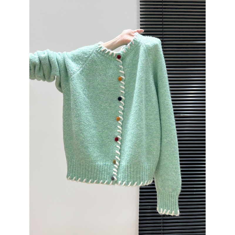彩扣针织毛衣外套女2025秋冬季新款慵懒风宽松设计感长袖开衫上衣