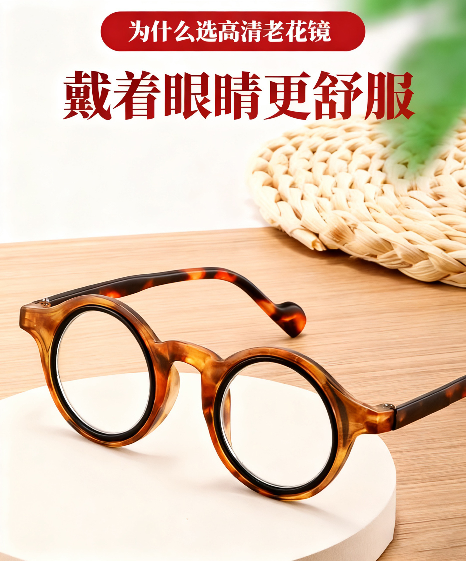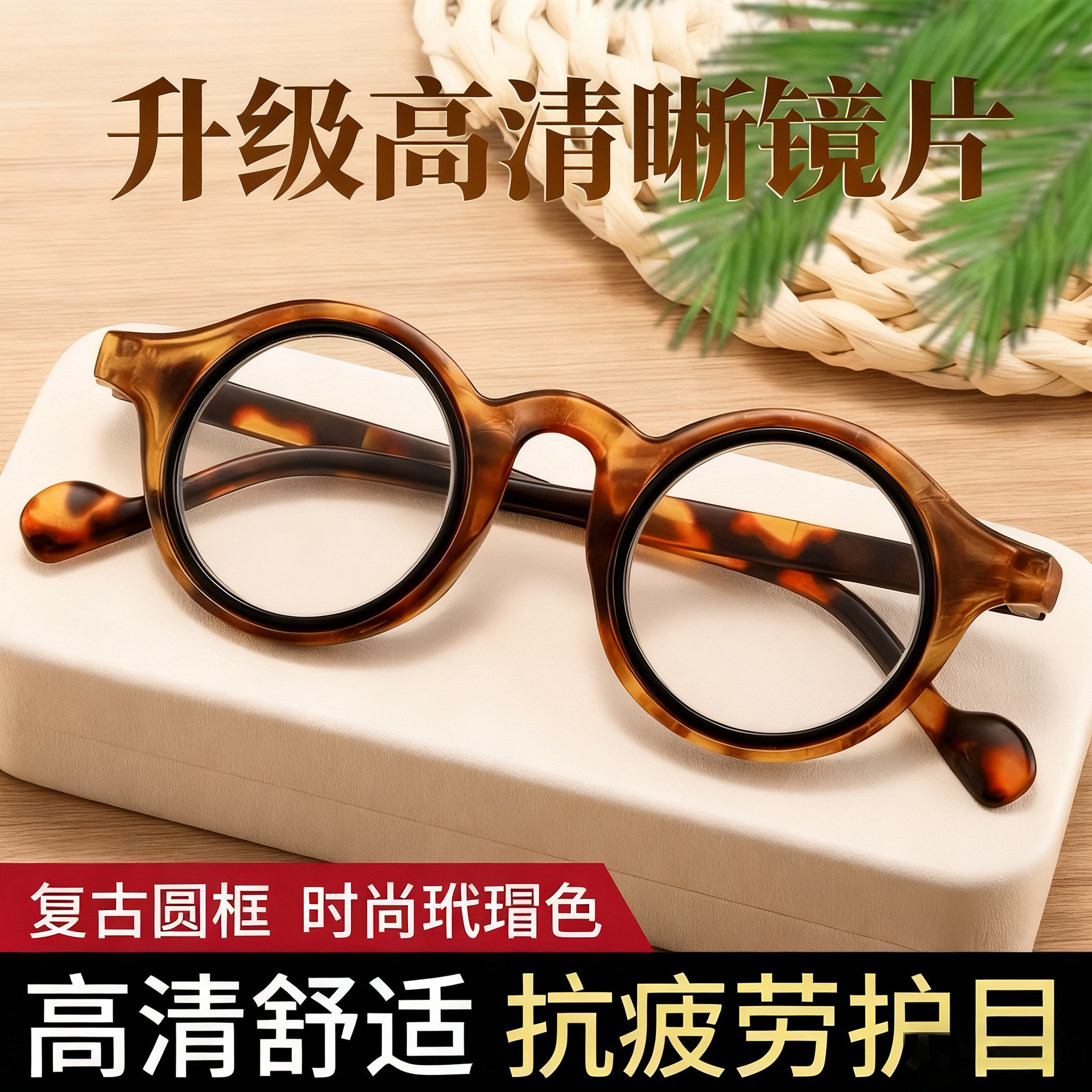 新款时尚复古圆框老花眼镜男女款超轻舒适中老年高清抗疲劳老花镜