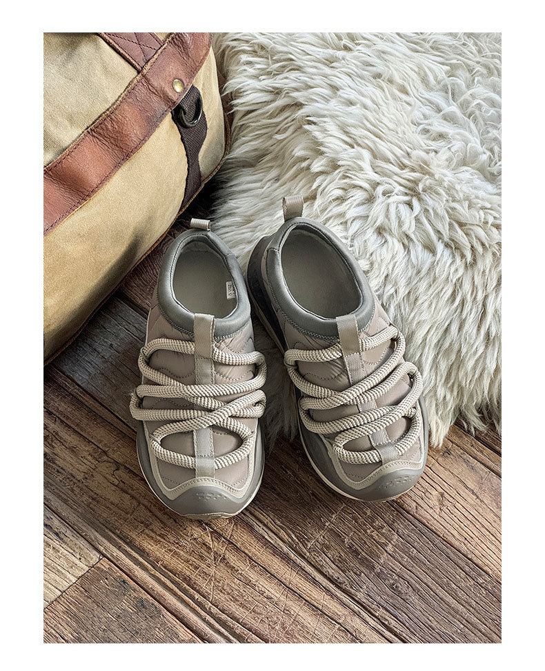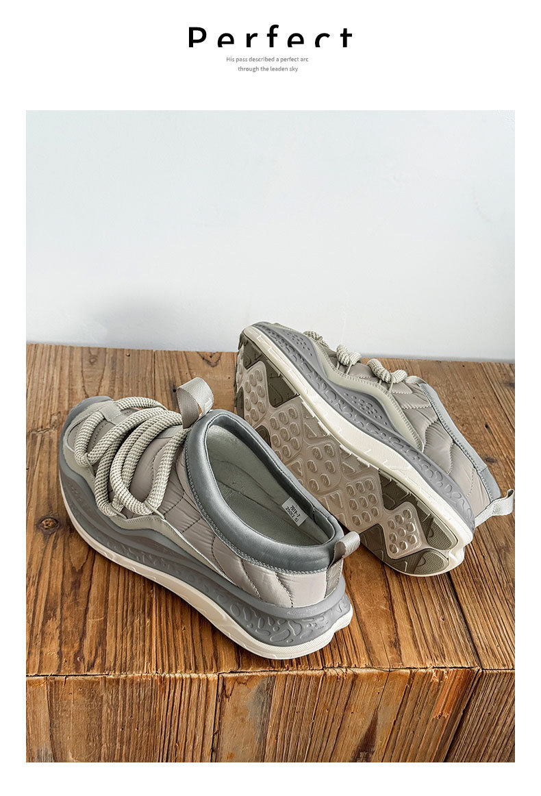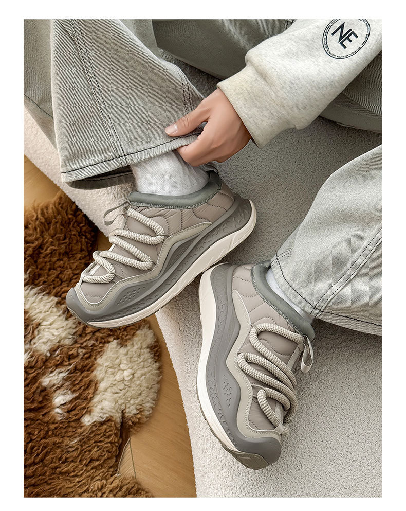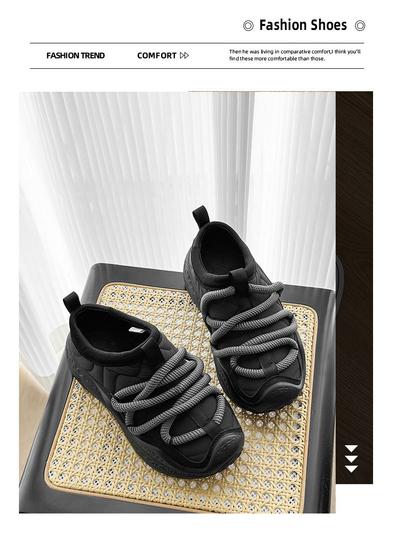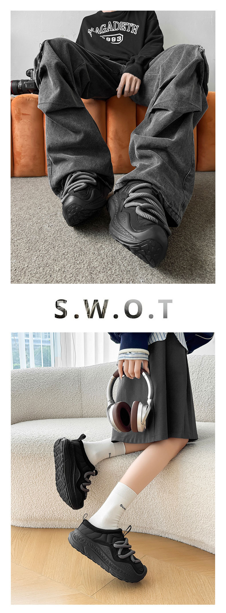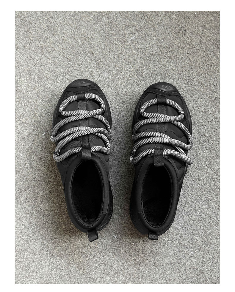 户外运动舒适加绒低帮防滑粗鞋带一脚蹬厚底休闲鞋保暖包头拖鞋潮