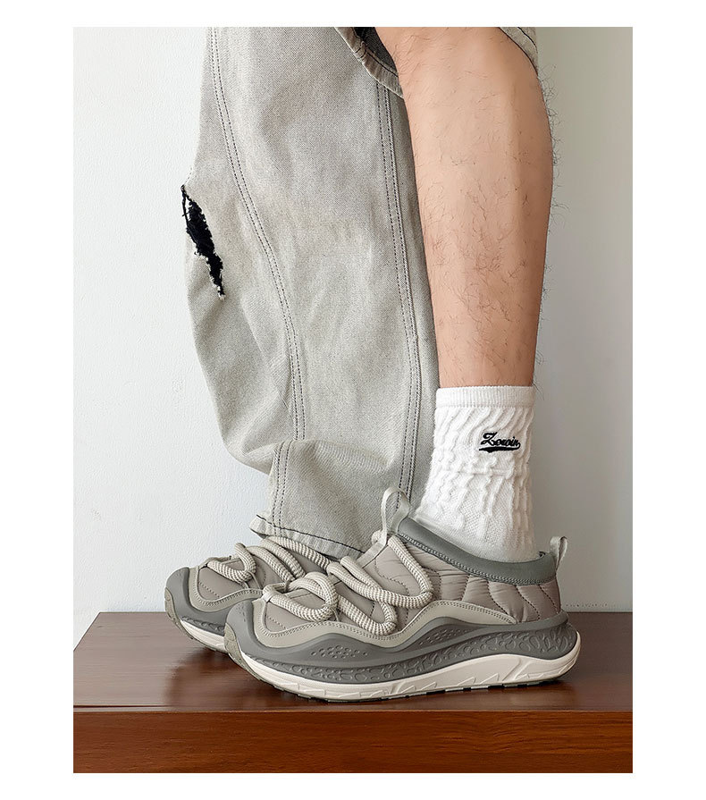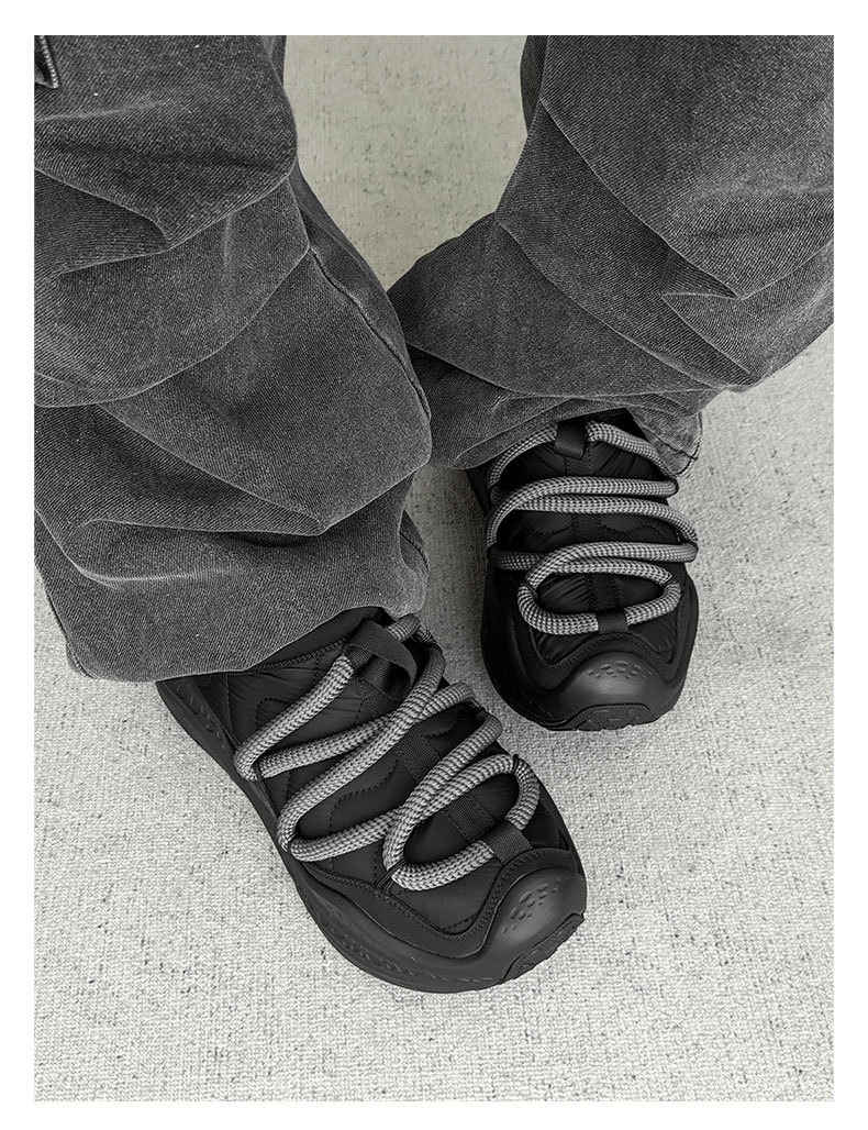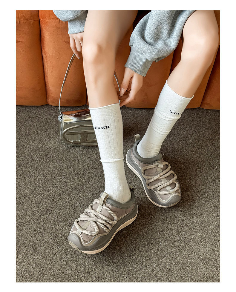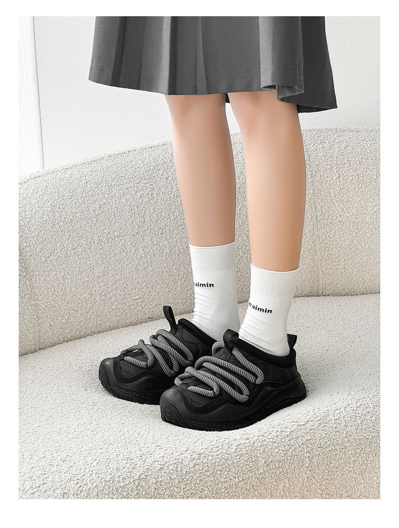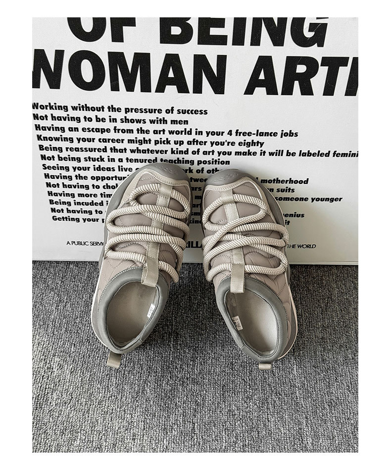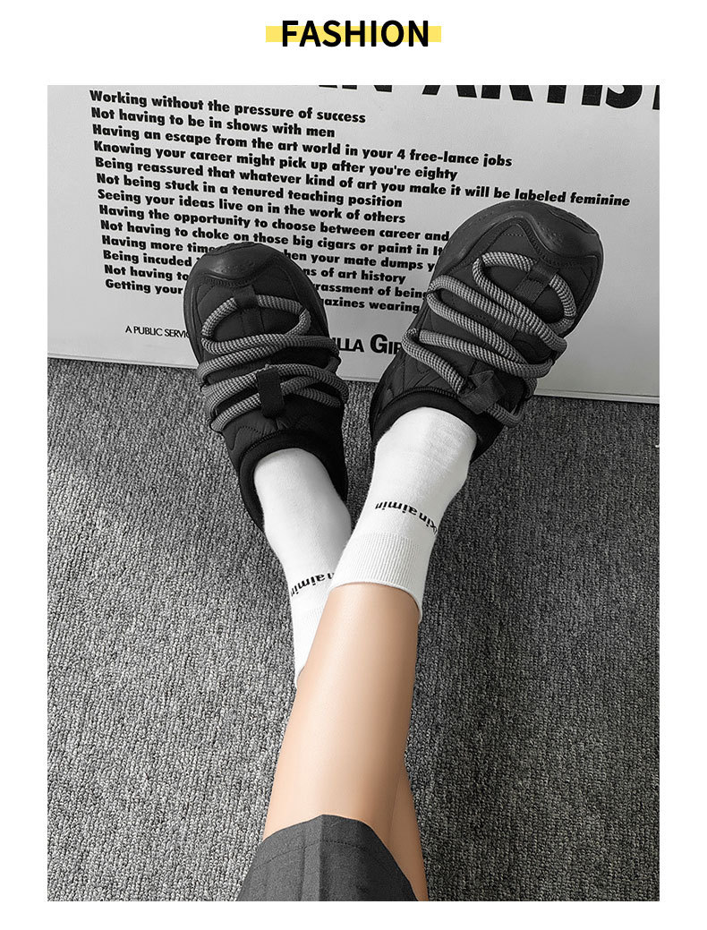 户外运动舒适加绒低帮防滑粗鞋带一脚蹬厚底休闲鞋保暖包头拖鞋潮