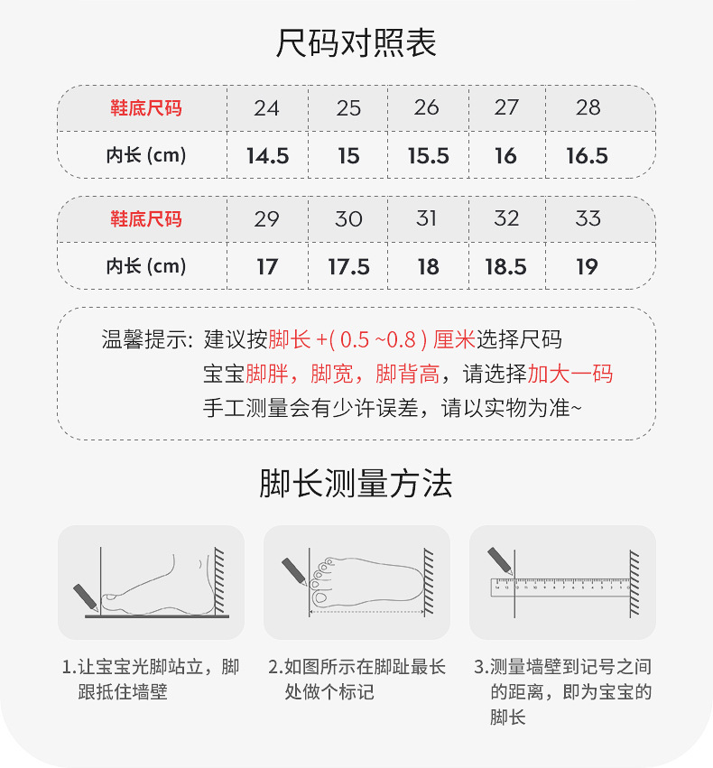 尺码 24,25,26,27,28,29,30,31,32,33