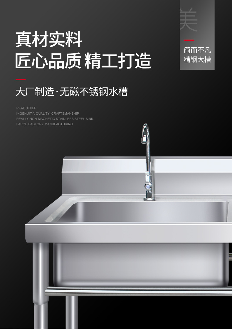 304加厚款不锈钢水池水槽单双三平台水池家用商用洗碗洗手盆消毒