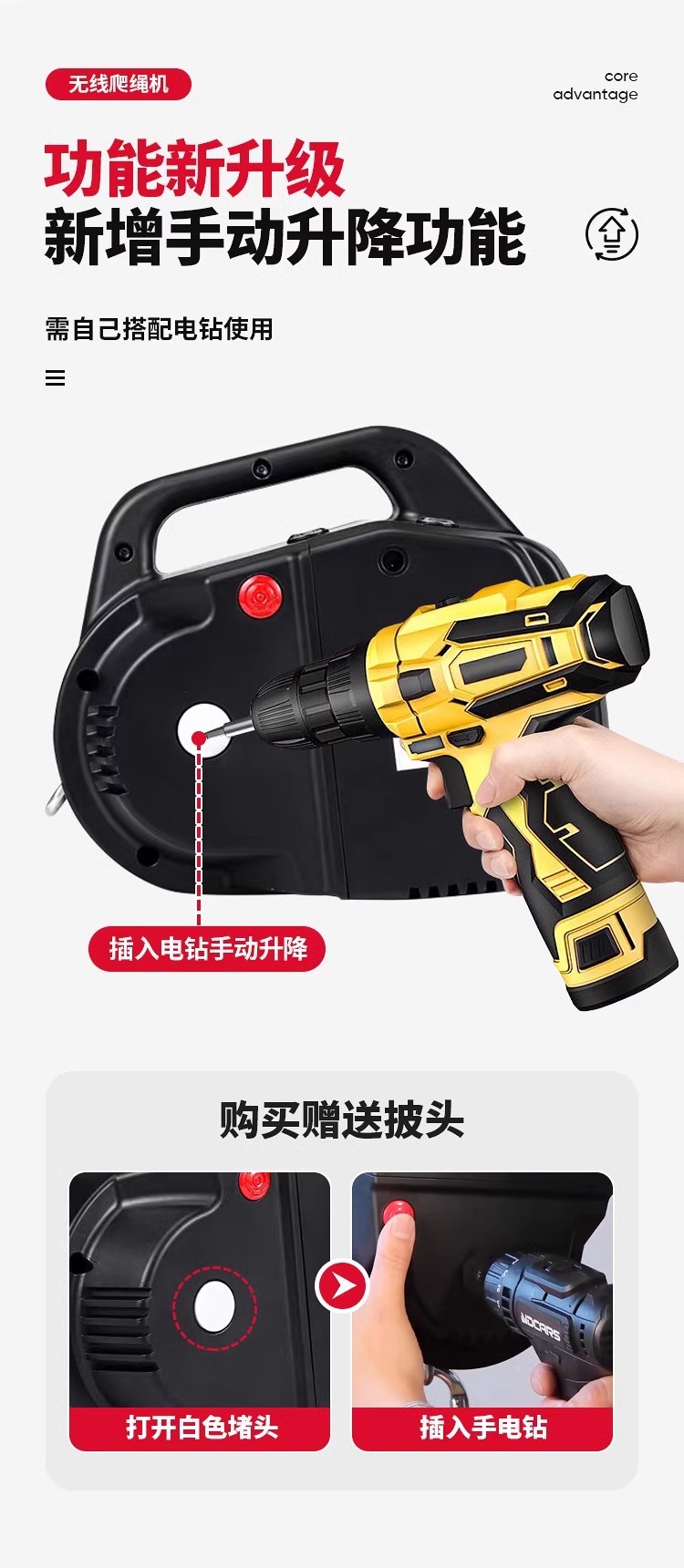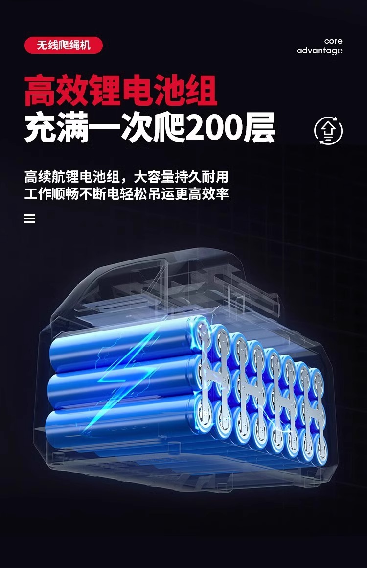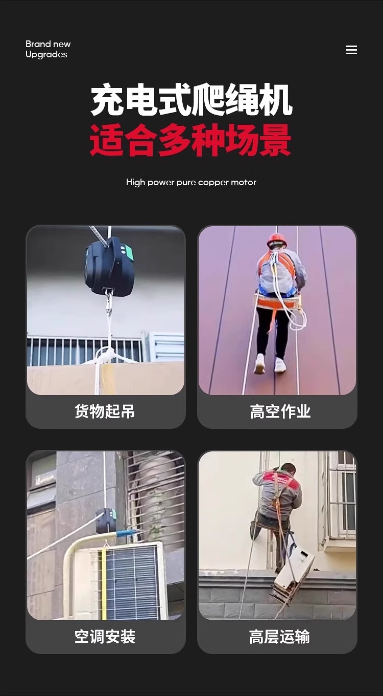 适用范围 充电式锂电池爬绳机 载重250KG,20AH锂电池