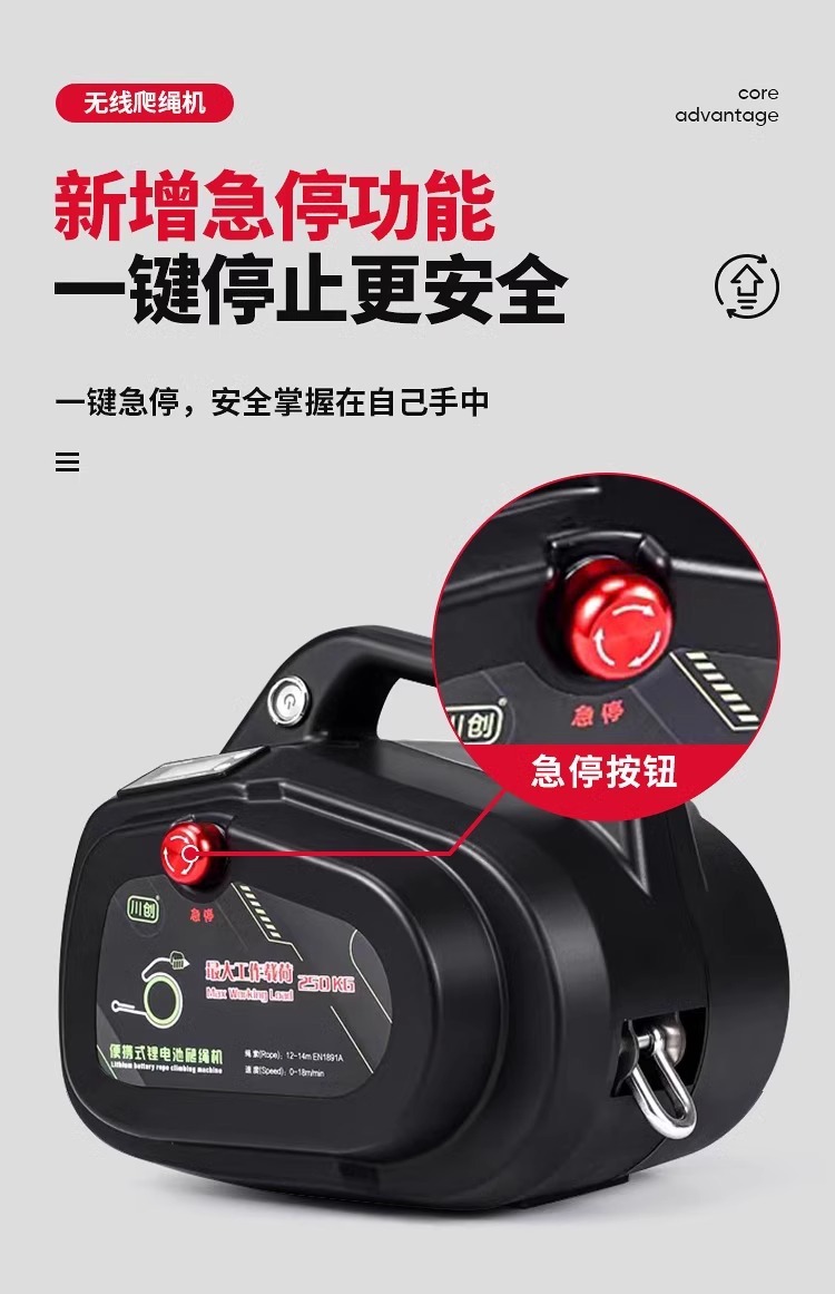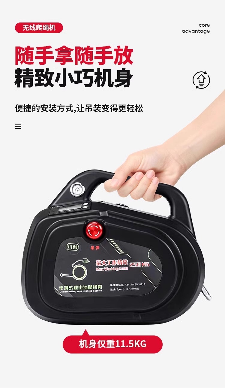 川创高空作业充电式遥控爬绳机电动葫芦锂电池升降机外墙吊装起重
