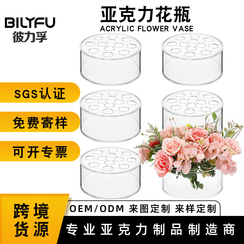 アクリル製花瓶、家庭用、結婚式、テーブル用、12穴、丸型、シンプルなフラワーボックス、透明な花瓶、高品質なプリザーブドフラワー用