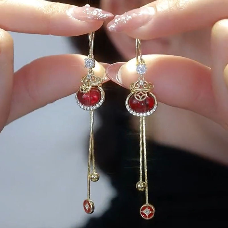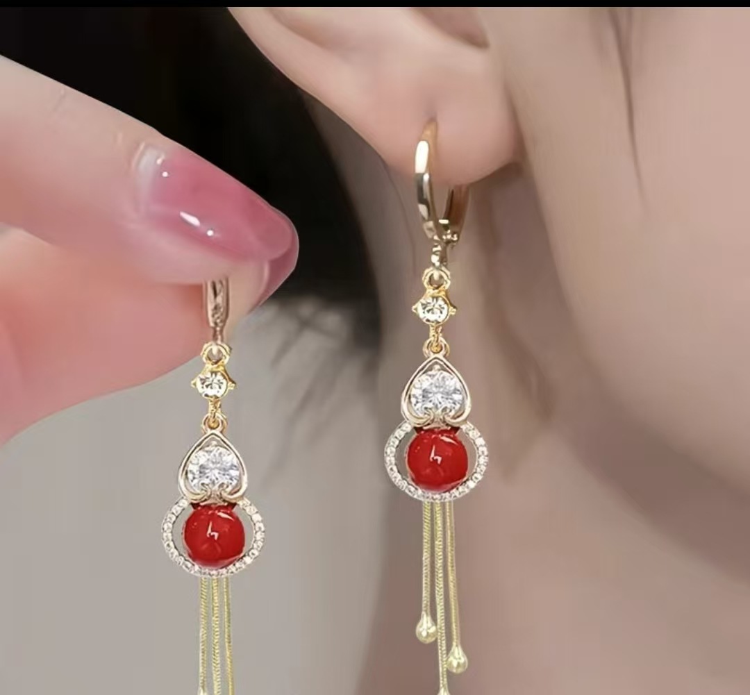 新款中国风喜庆红色葫芦珠珠耳环女高级感耳坠时尚百搭气质耳饰