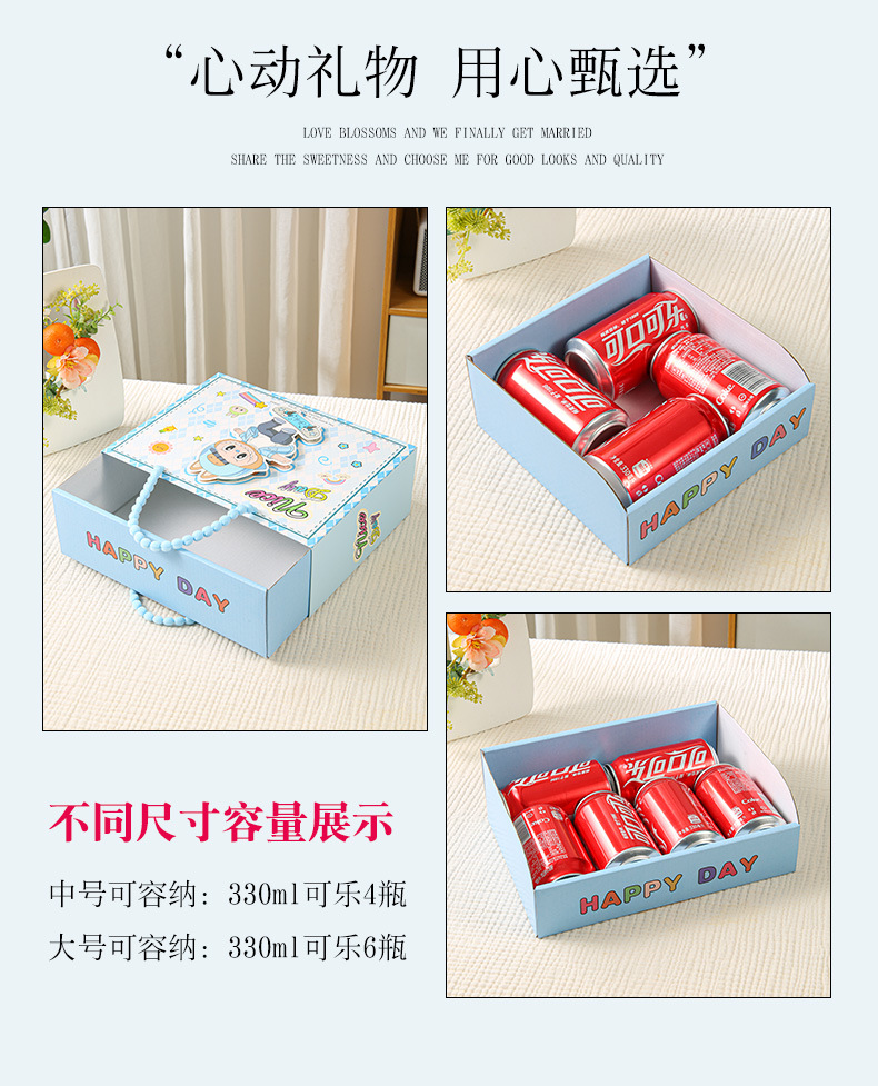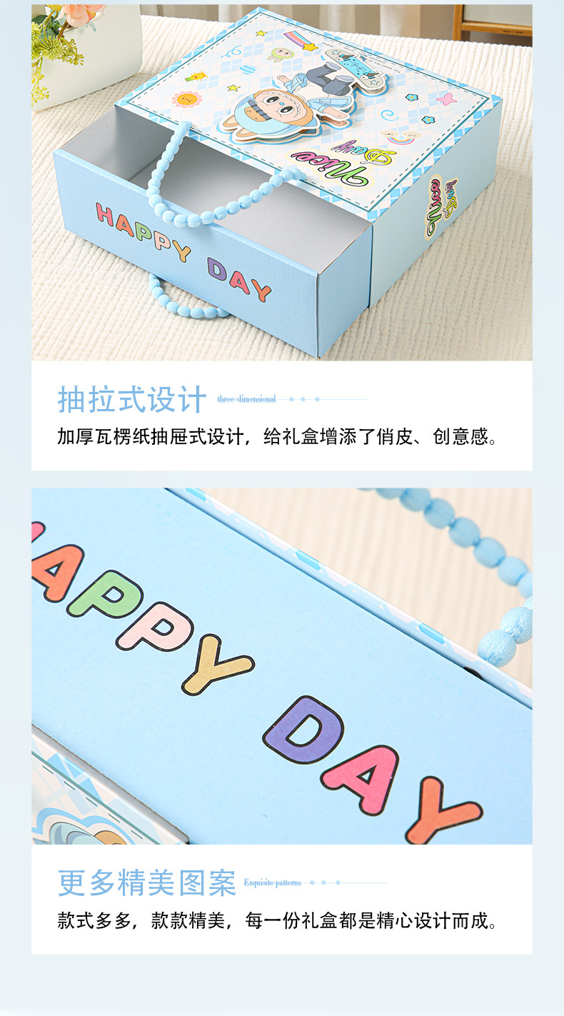 宝宝满月周岁伴手卡通包装盒生日空盒抽屉礼品盒糖盒十周岁百日宴