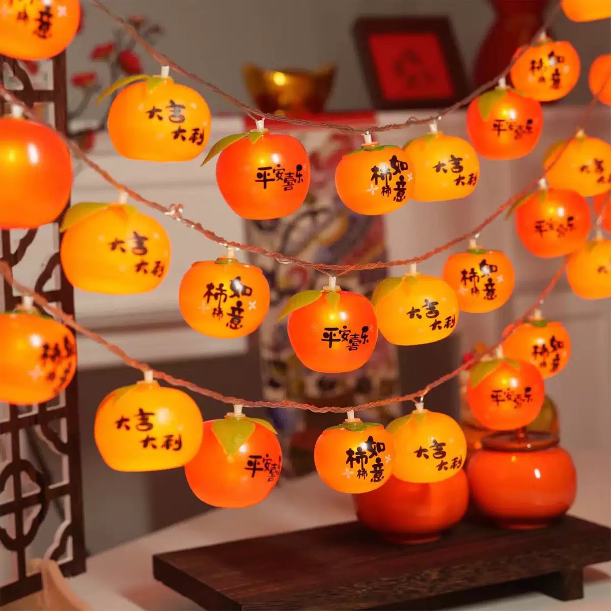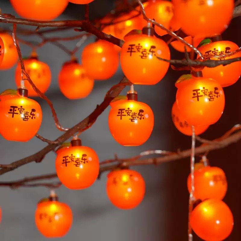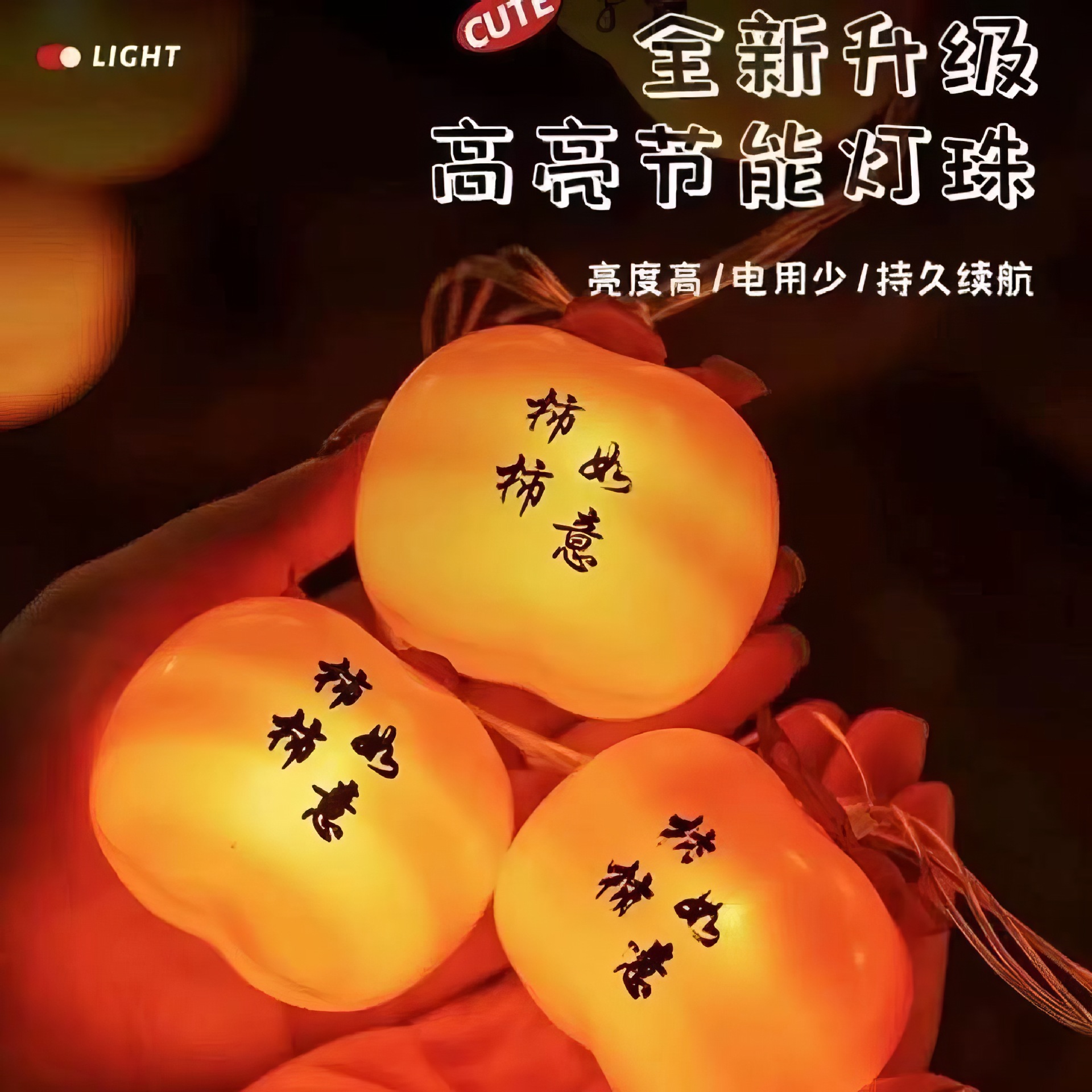 柿子灯柿柿如意新年春节彩灯过年装饰灯节日太阳能灯串庭院红灯笼