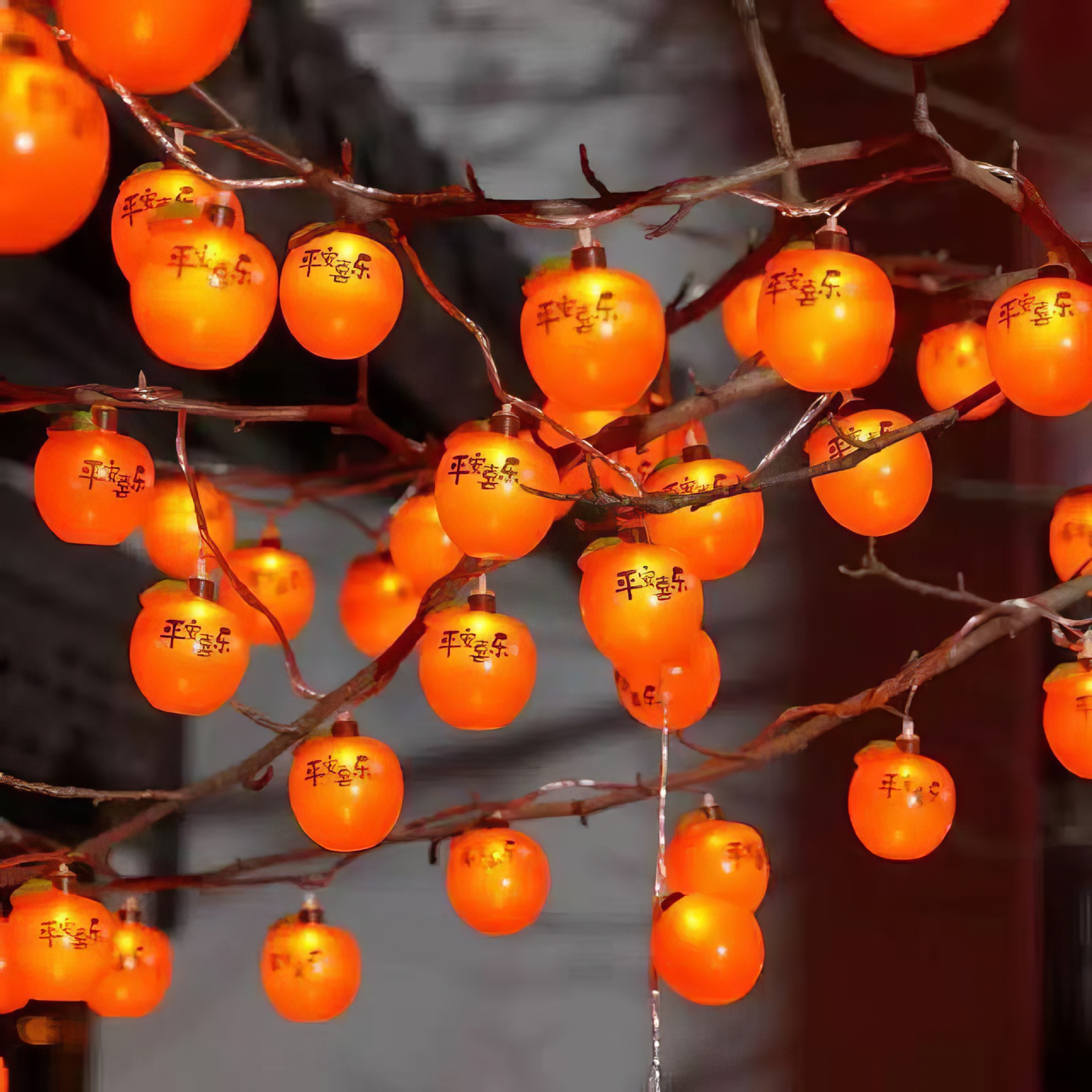 2026年春節の雰囲気柿柿如意太陽光LED柿ライト屋外吊り下げツリーライトフェスティバルストリート庭装飾