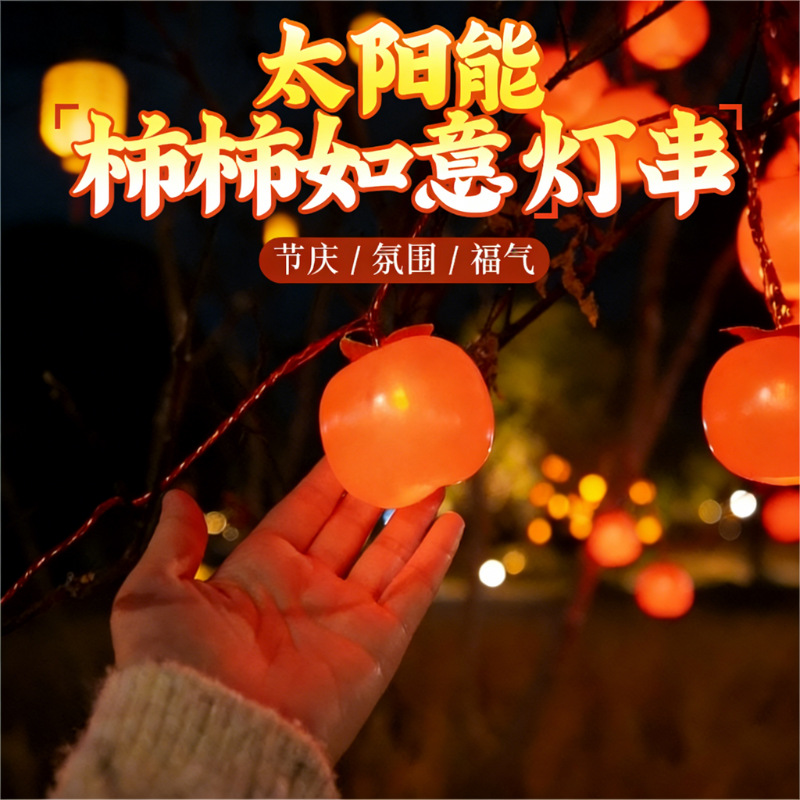 春节过年柿柿如意led灯串新年氛围太阳能户外防水装饰彩灯元旦