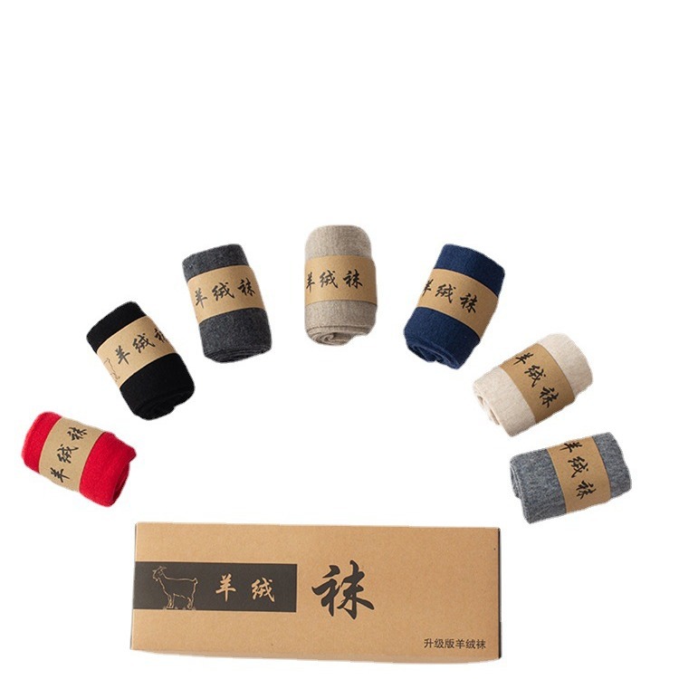 双針カシミヤ靴下純色男性女性中筒通気吸汗保温ギフトボックス本命年赤い靴下