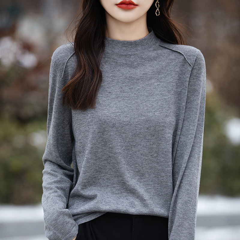 ウールの半高襟の底のシャツの女性の新型の秋冬の純色の柔らかいモチとしたジャケットの薄いタイプのニットウェア