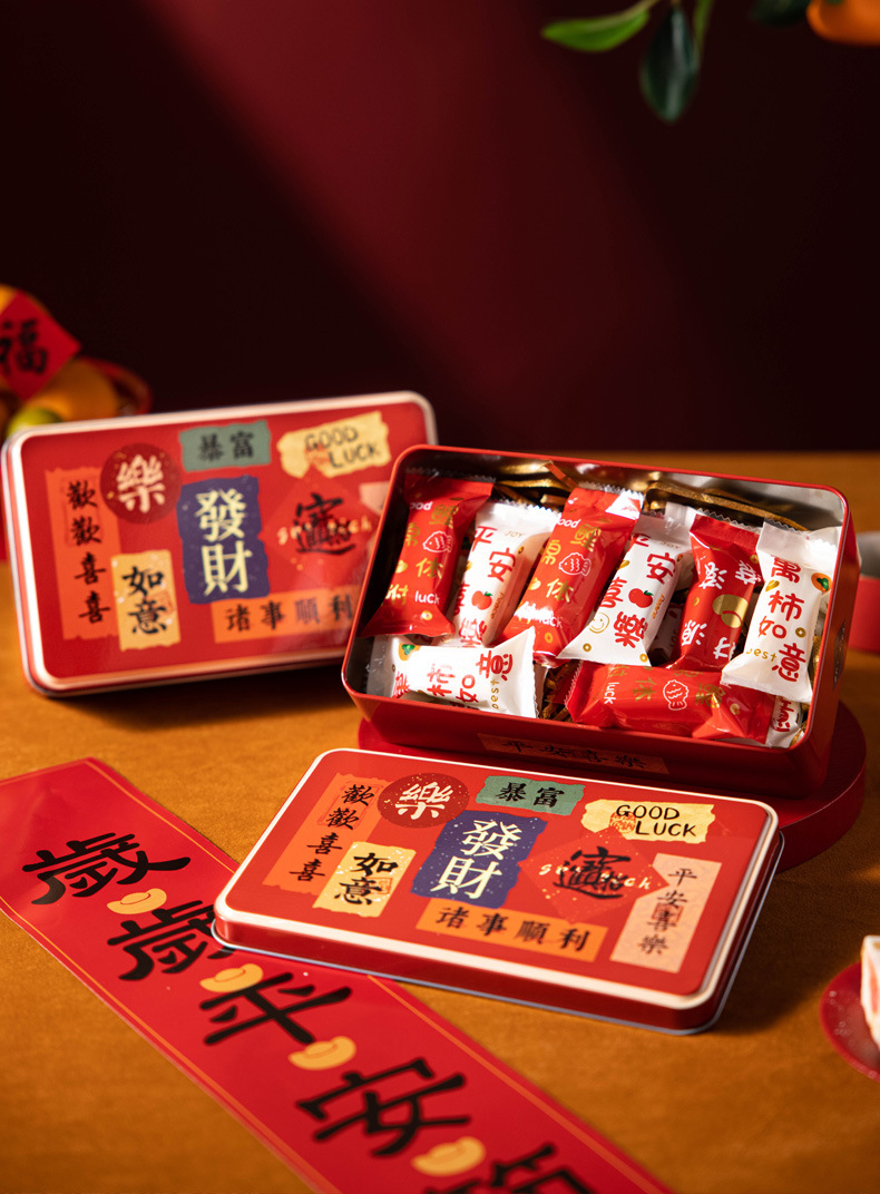2026新年红色太妃糖雪花酥饼干罐子伴手礼小铁罐空盒马年马口铁盒