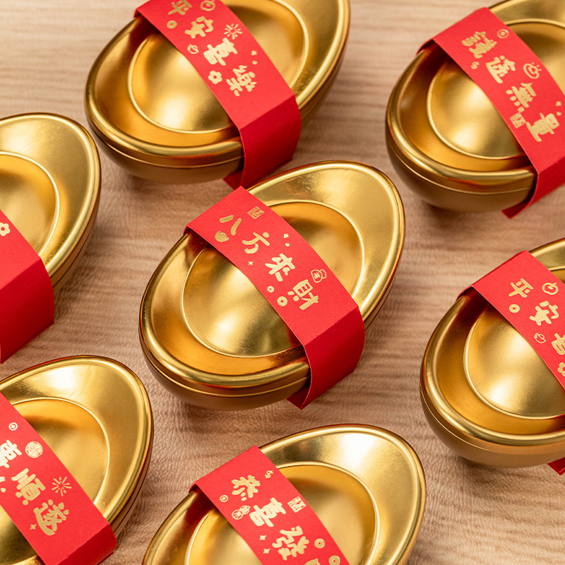 2025新年糖果盒金元宝礼盒仿真恭喜发财春节氛围巧克力罐马口铁盒