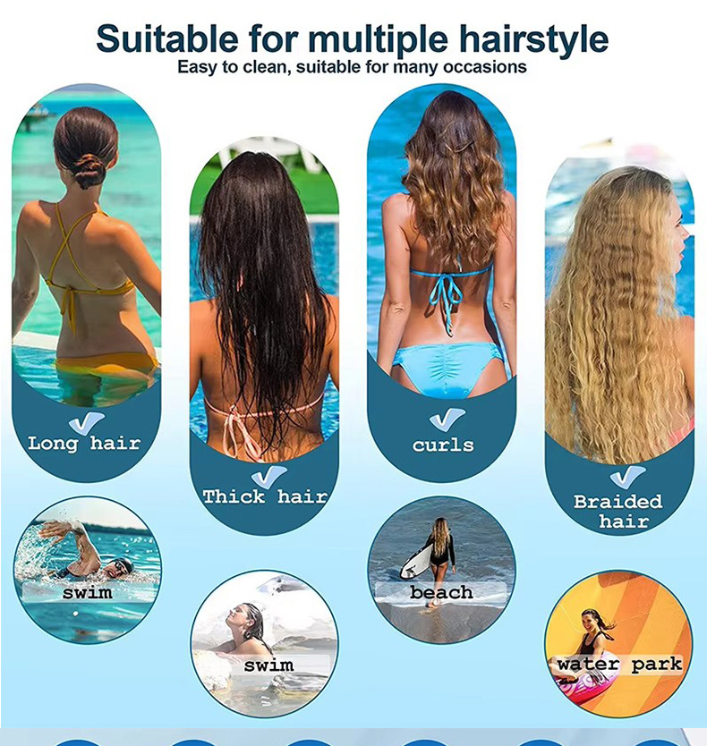 女性用クロスボーダー特大スイミングキャップ、防水、非伸縮性、シャンプー、特大スイミングスパハット、ロングヘア、シリコンスイミング