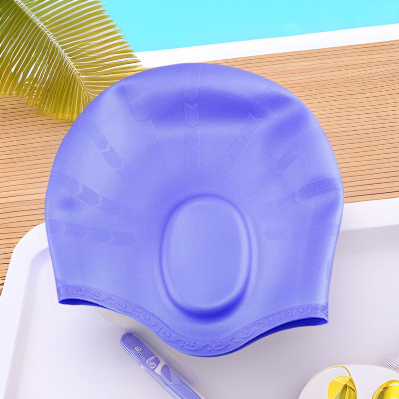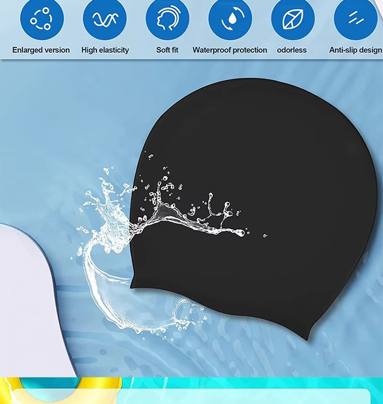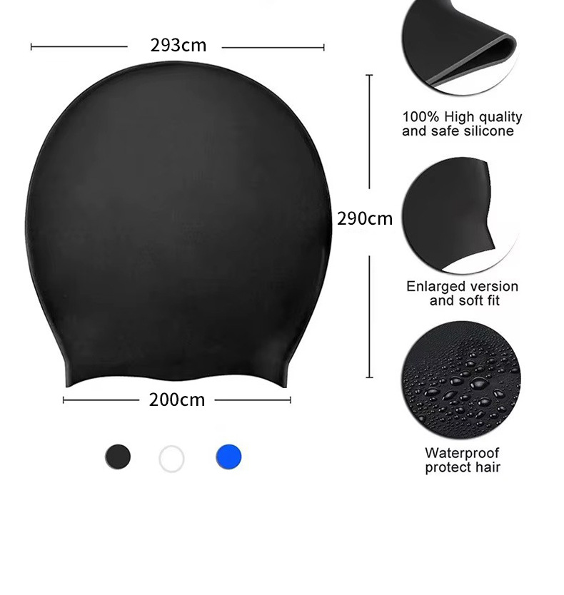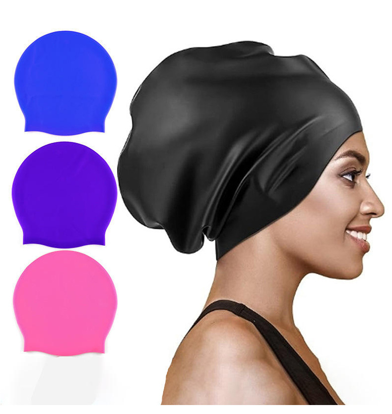 クロスボーダー特大シリコン水泳帽、無地、高弾性、頭を締め付けない、女性用ロングヘア用フルカバー型ヘアケアキャップ