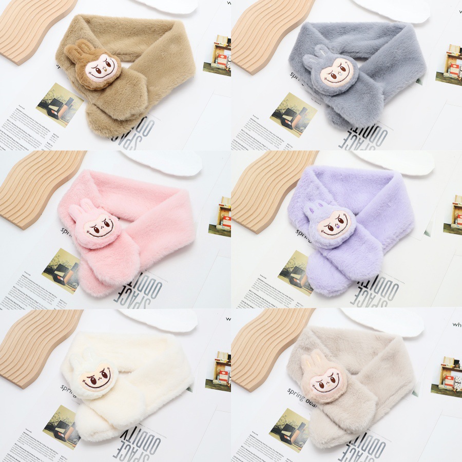 2025冬季新款儿童毛绒围巾可爱LABUBU小兔纯色交叉男女童保暖围脖