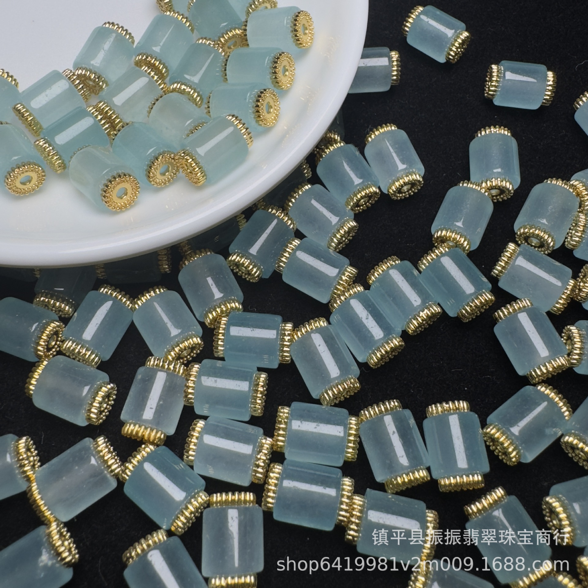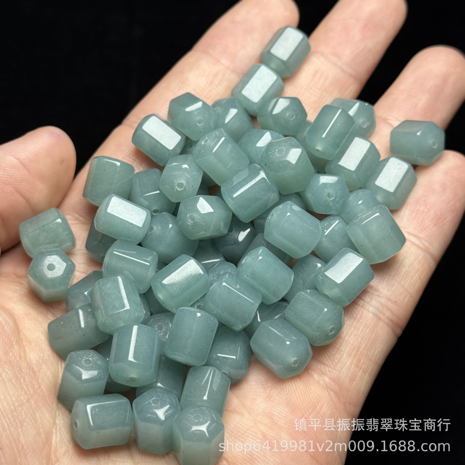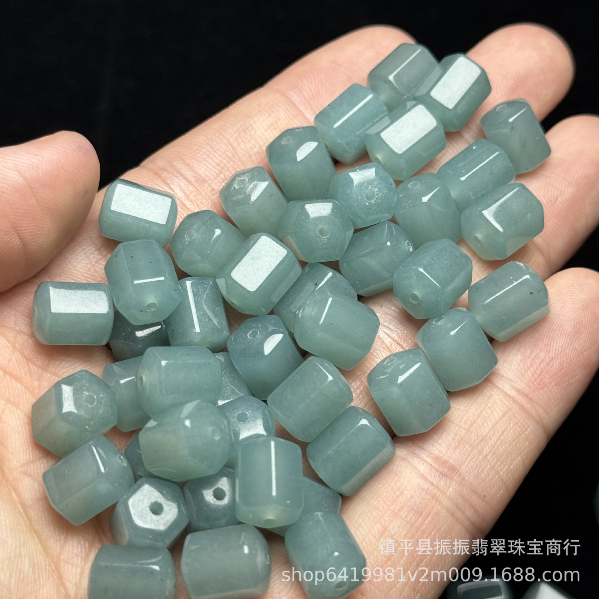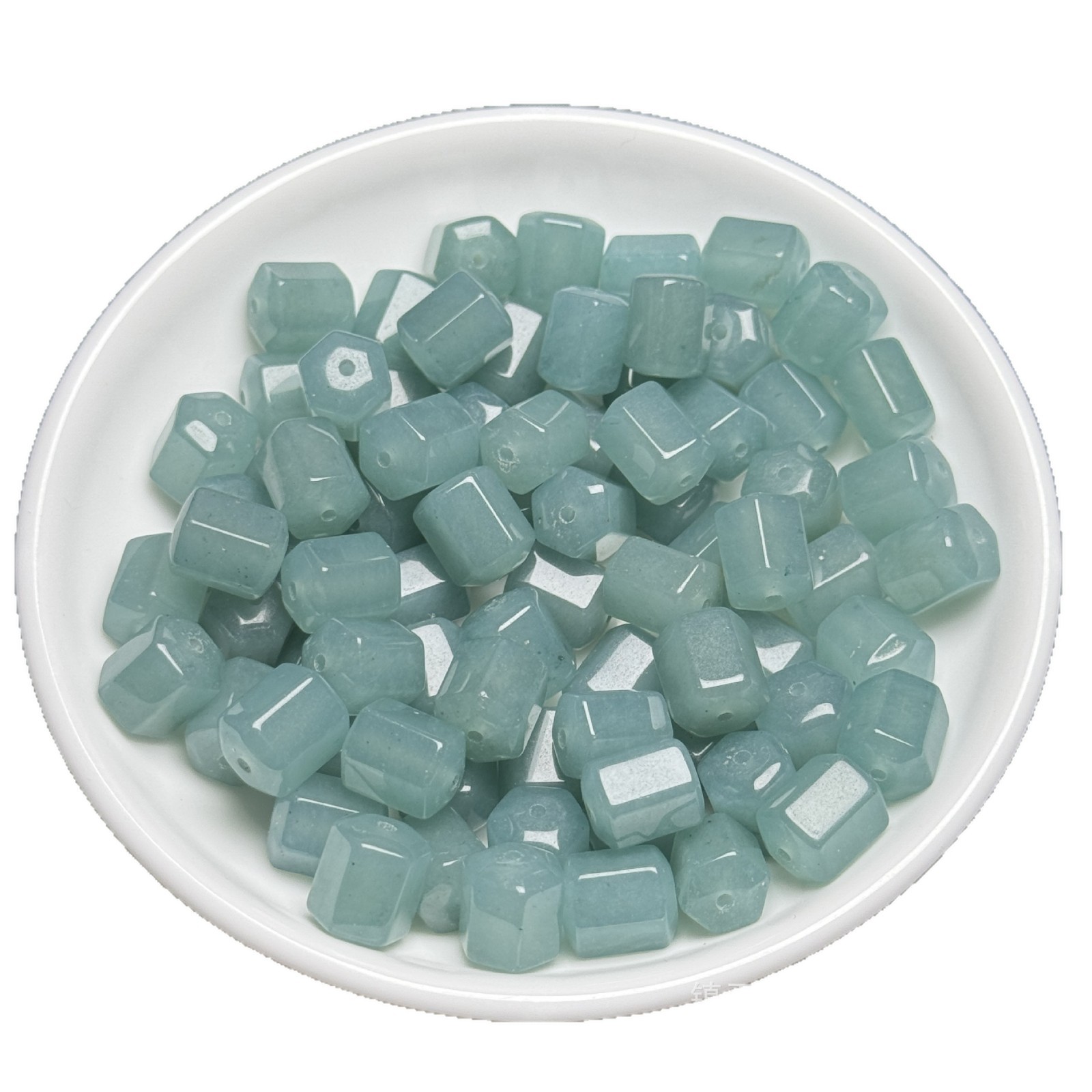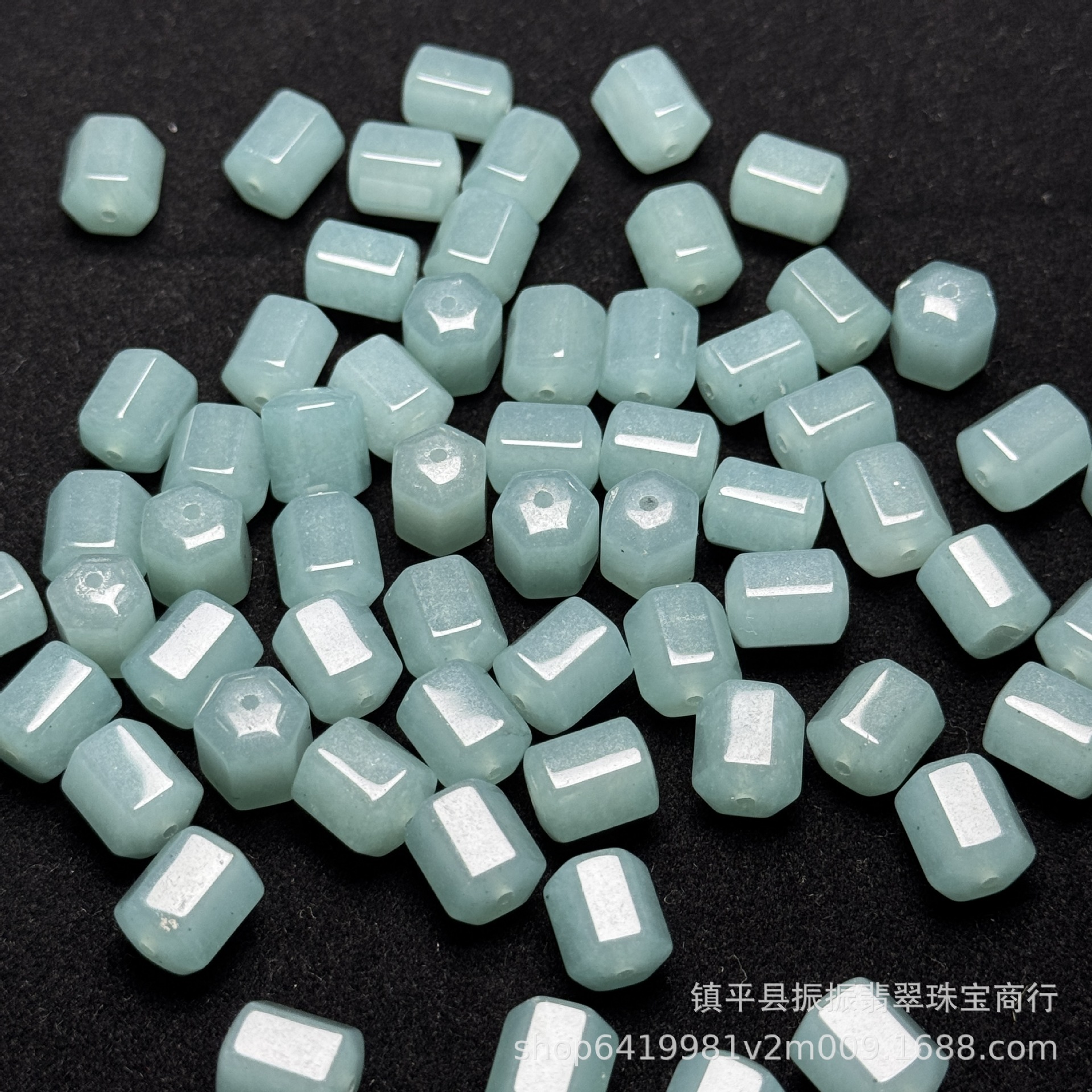 翡翠蓝水色8×10mm六棱珠桶珠批发 diy玉石饰品手链项链散珠配件