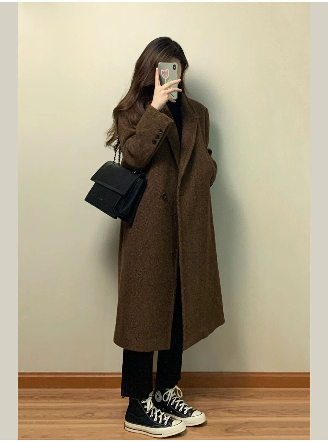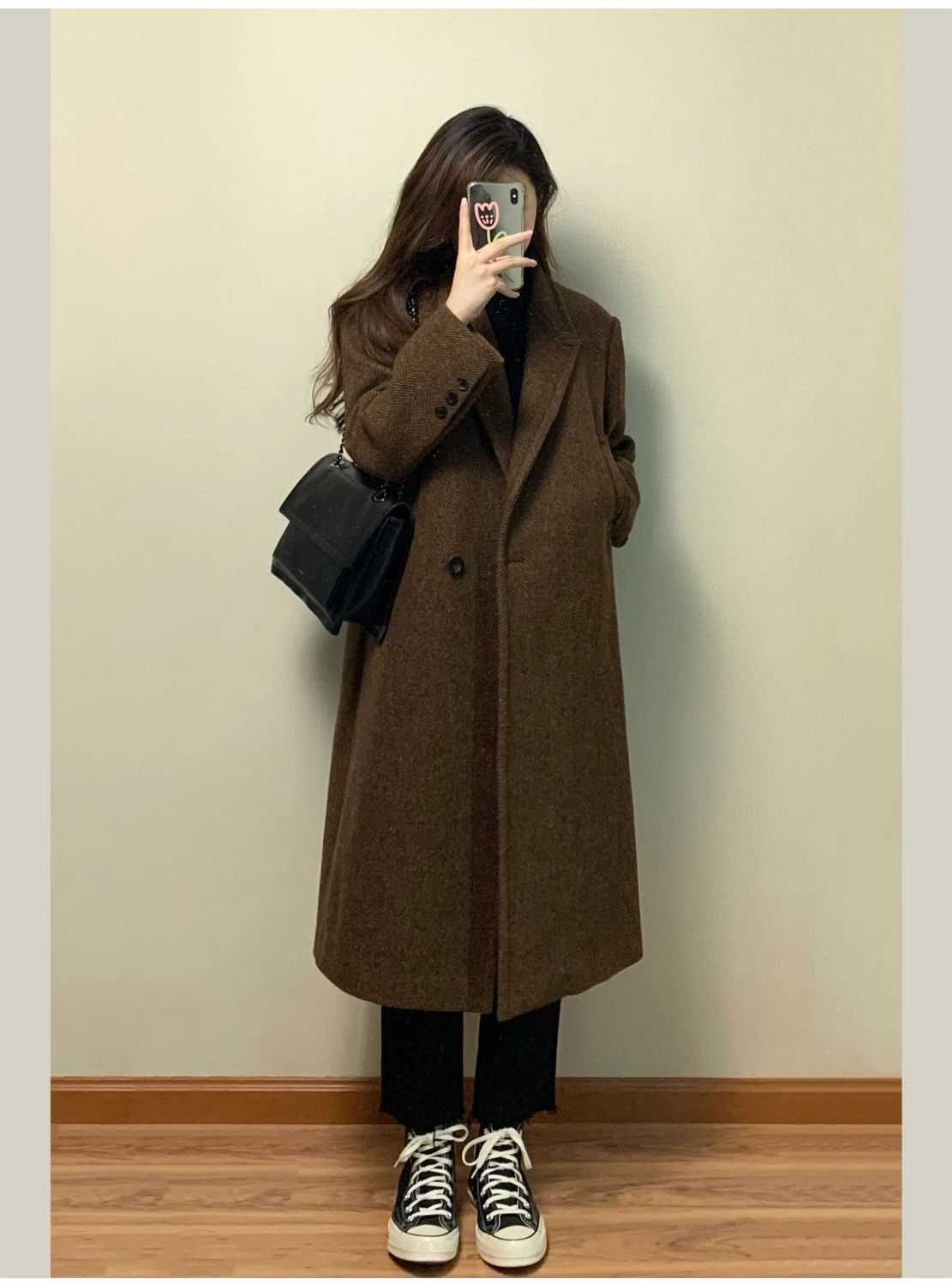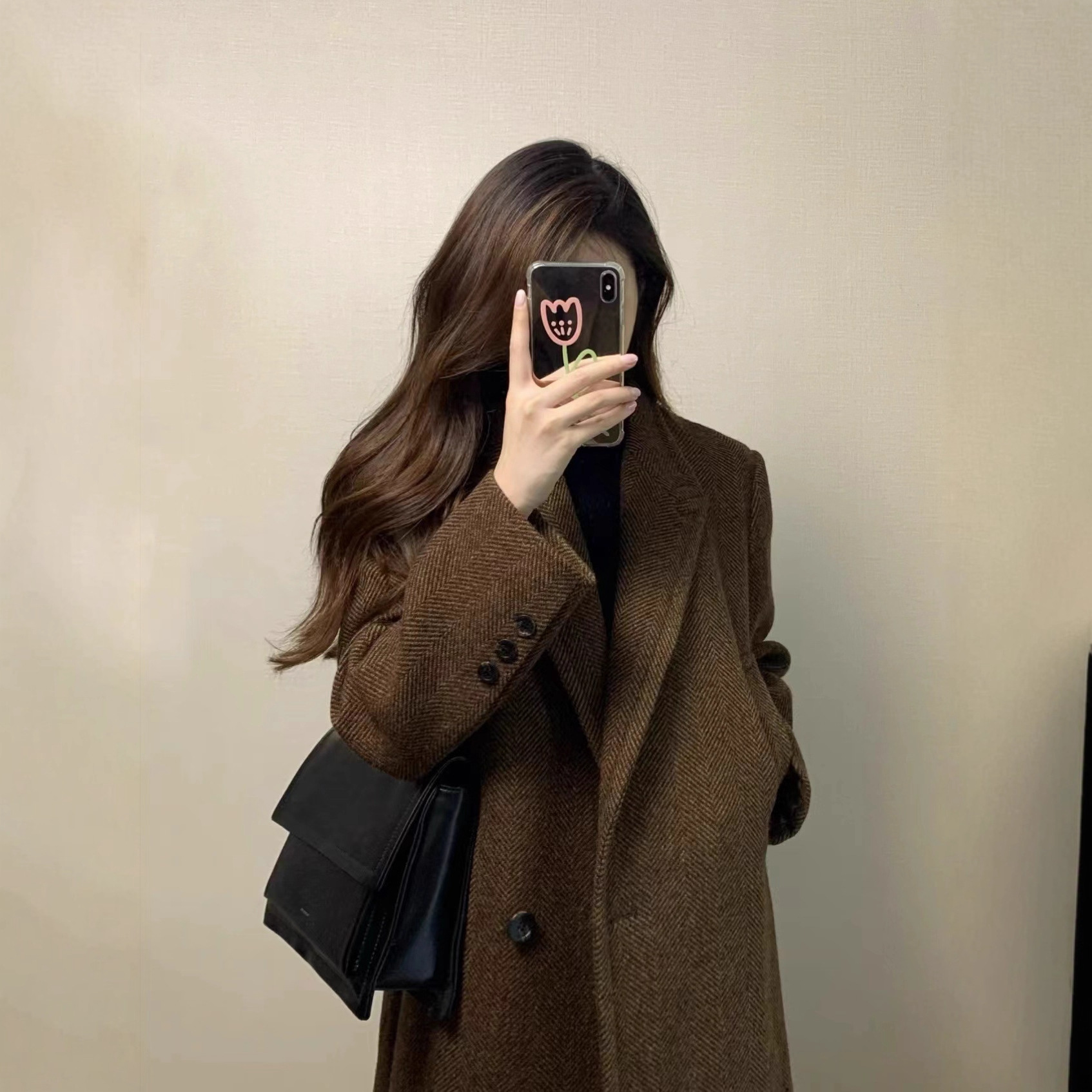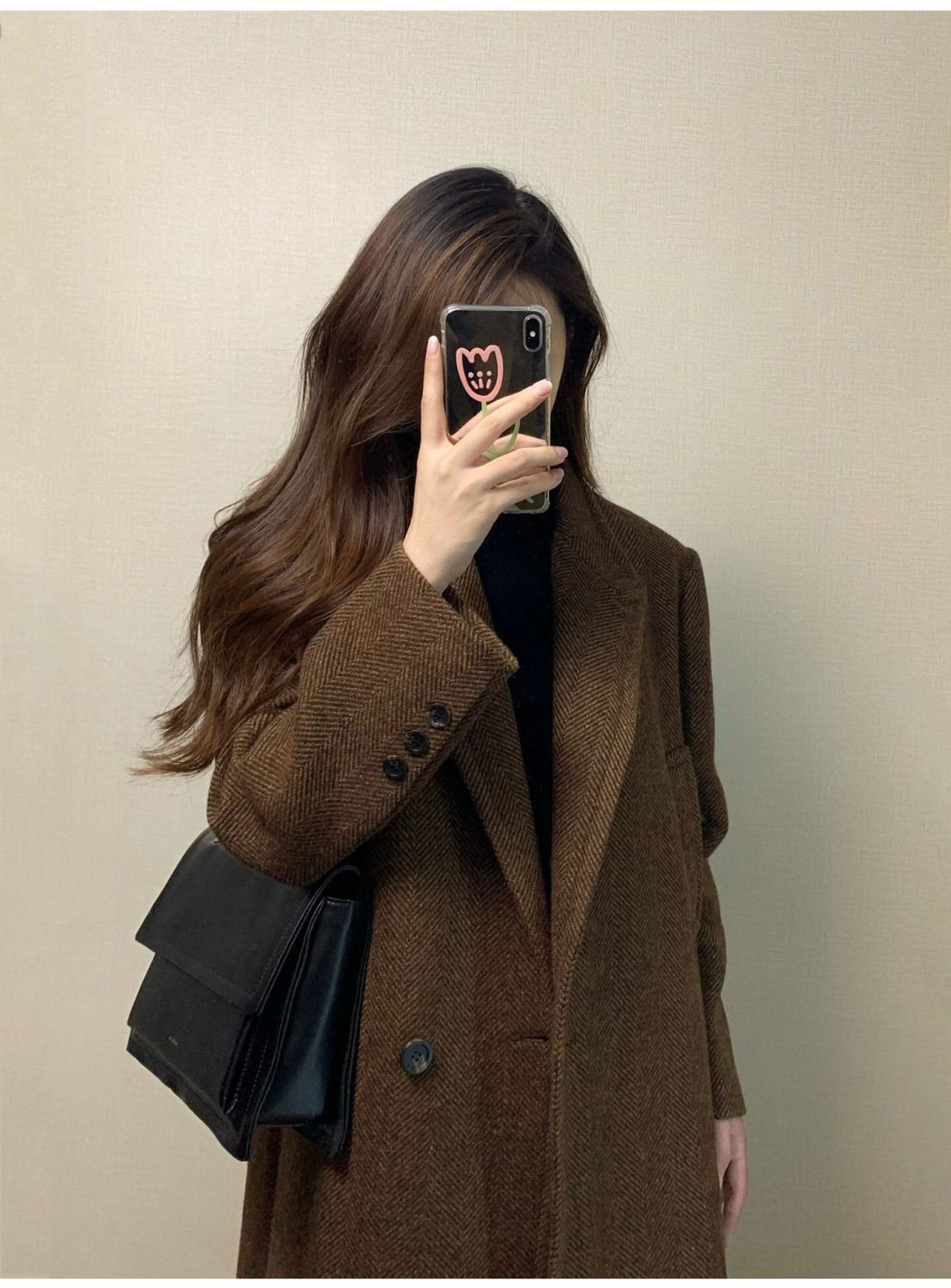 新款慵懒风宽松感毛呢大衣女秋冬小个子过膝中长款保暖外套女装