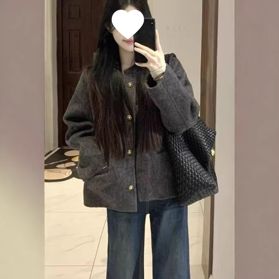 短款韩系灰色香风大衣秋冬款2025新款气质外套高级小个子黑灰色