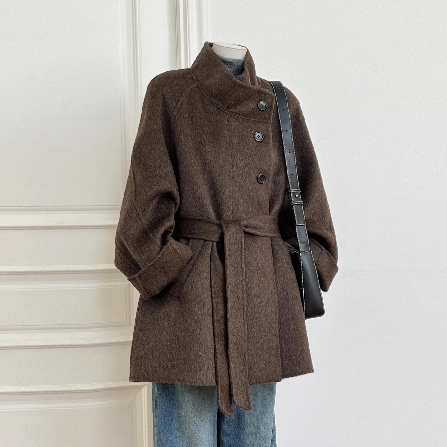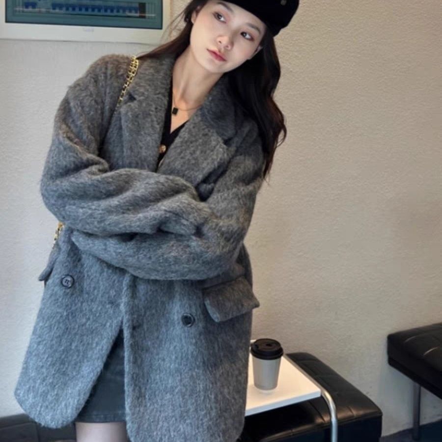 韩系毛呢子大衣女2025新款小个子宽松毛呢外套气质秋冬款慵懒风