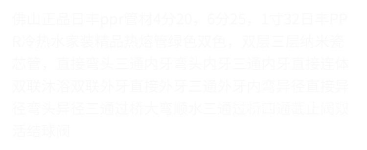 产品规格 4分20绿色-清单发货1,4分20绿色-弯头20个,4分20绿色-直接20个,4分20绿色-三通20个,4分20绿色-大弧弯10个,4分20绿色-过桥弯10个,4分20绿色-1/2内丝弯头10个,4分20绿色-1/2内丝三通10个,4分20绿色-1/2内丝直接10个,4分20绿色-过桥四通10个,4分20绿色-连体双联2个,4分20绿色-顺水三通10个,6分25绿色-弯头20个,6分25绿色-直接20个,6分25绿色-三通20个,6分25绿色-大弧弯10个,6分25绿色-过桥弯10个,6分25绿色-1/2内丝弯头10个,6分25绿色-1/2内丝三通10个,6分25绿色-1/2内丝直接10个,6分25绿色-过桥四通10个,6分25绿色-连体双联2个,6分25绿色-顺水三通10个,6分25绿色-清单发货1