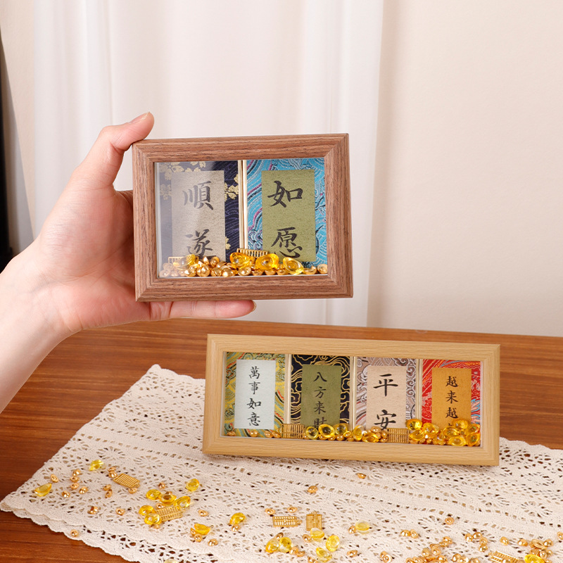 新中式迷你中空立体相框书法宋锦文创摆台手写毛笔字diy空白画框