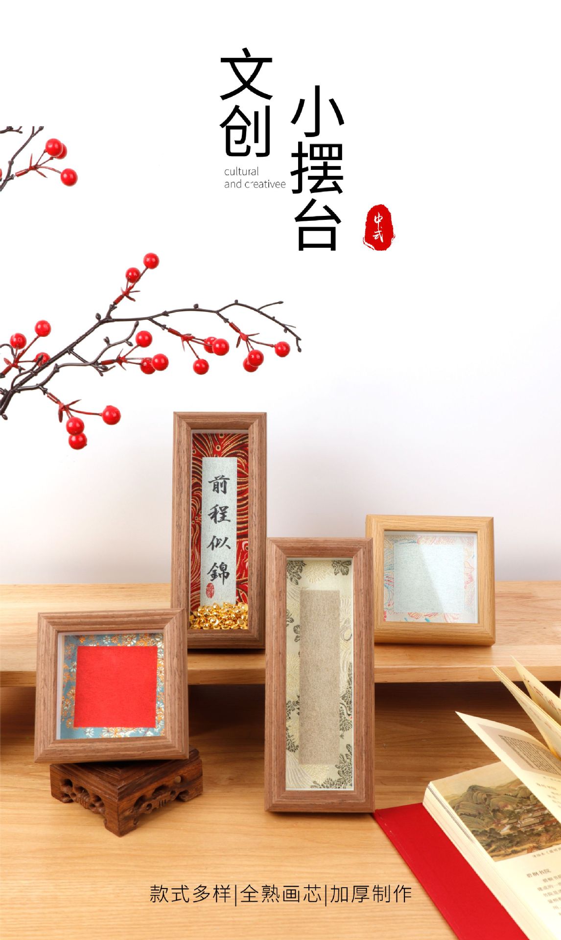 中式相框长条书法宋锦硬卡正方形文创摆台手写毛笔字diy空白画框