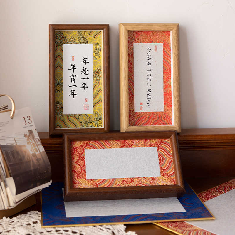 ミニ宋錦硬カード書道長条フォトフレーム置物手書きdiy宣紙文創礼品額縁置物卸売り