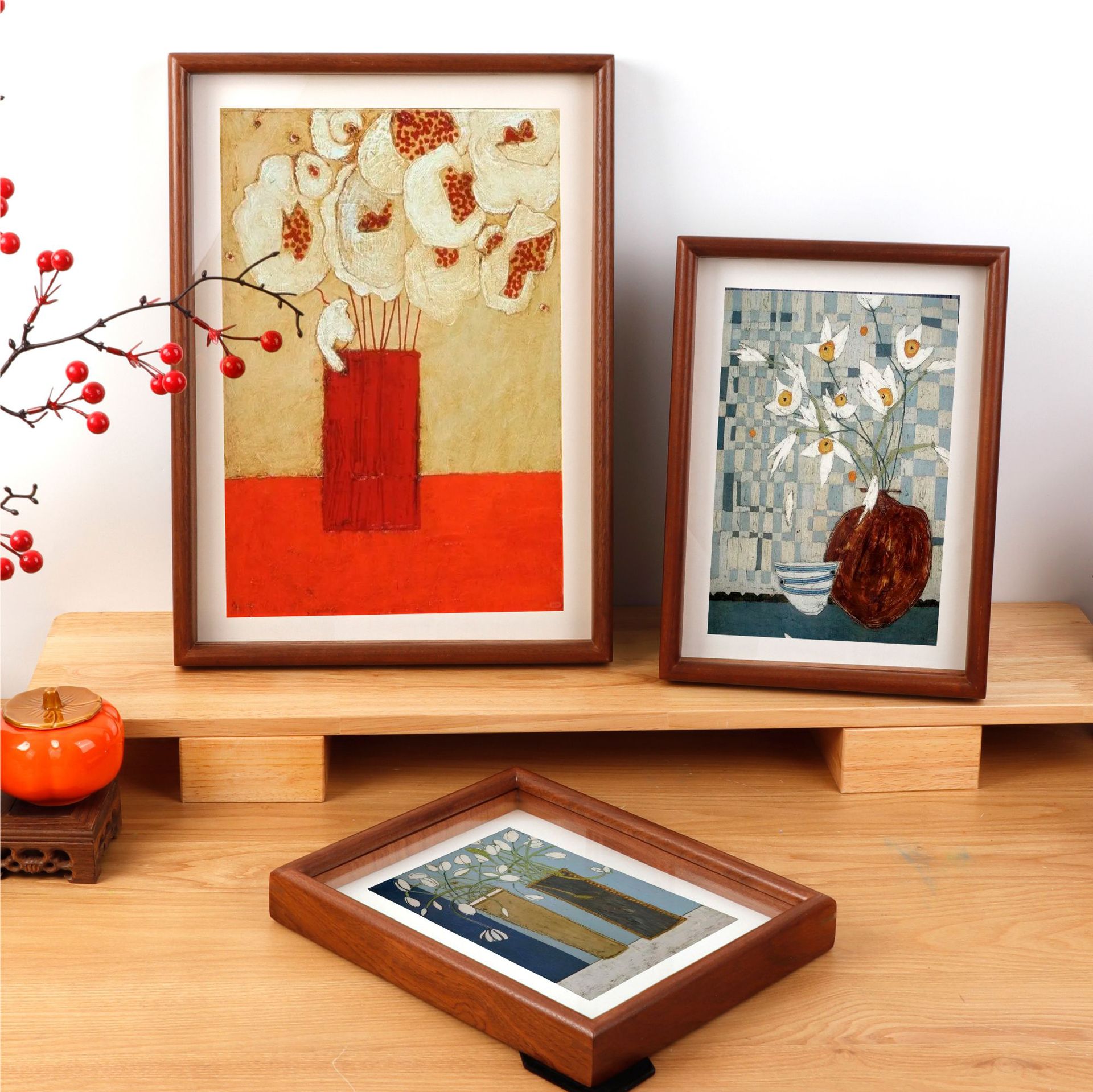 实木榫卯黑胡桃色相框中空摆台方形46寸8寸10寸a4书法文创字画框