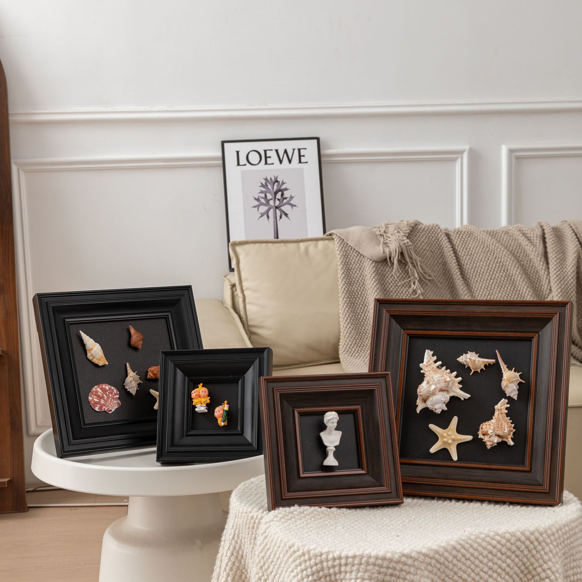 盲盒收纳黑色相框摆台正方形4寸6寸8寸欧式浮雕客厅装饰画框批发