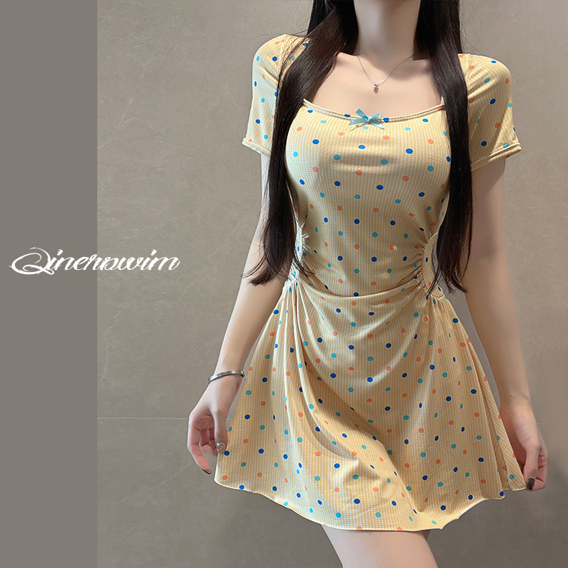 泳衣女款裙式独立平角裤元气少女夏日新款波点甜美保守显瘦泡温泉