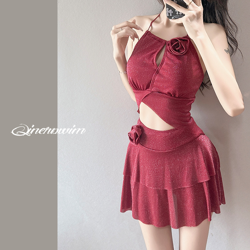 水着女性のワンピースサスペンダーソリッドカラースイートスリム痩身セクシーな純粋な欲望スタイル休暇温泉水着卸売