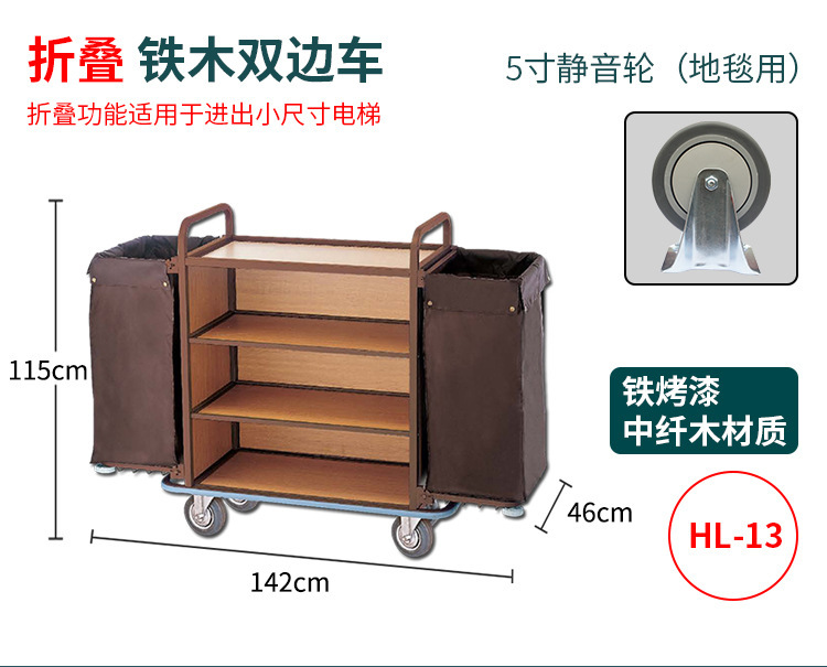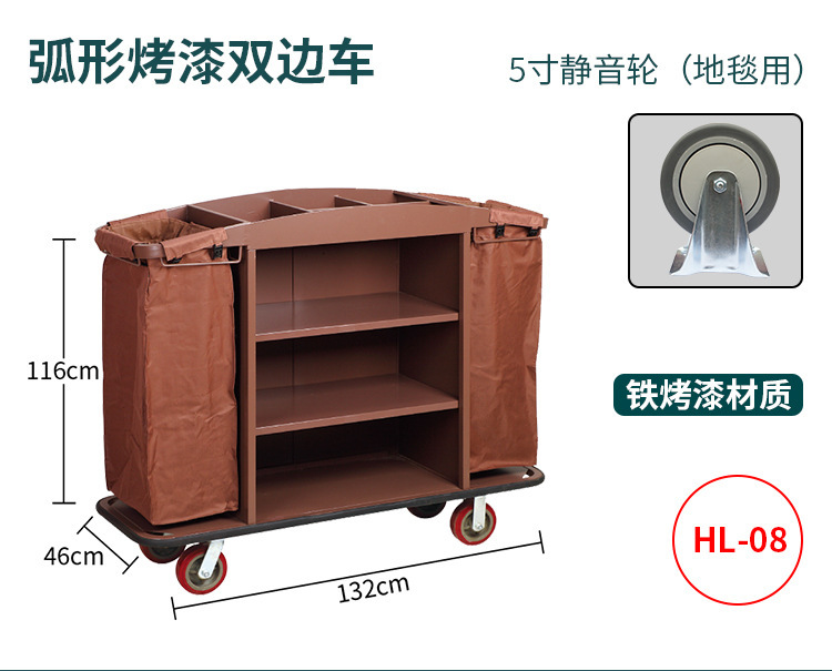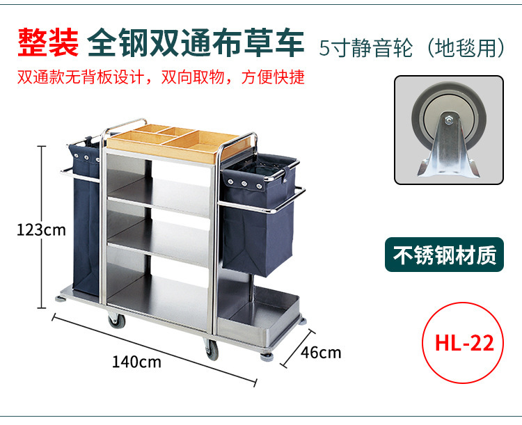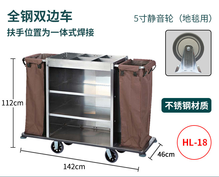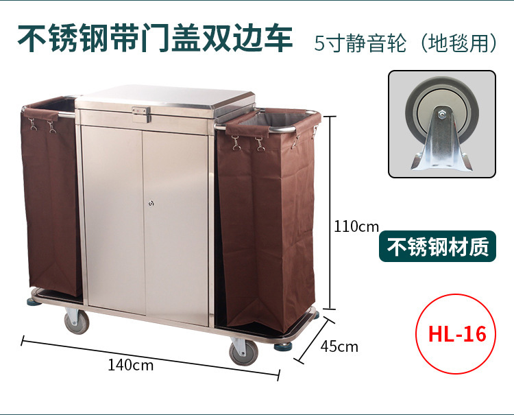 星级酒店布草收纳清洁客房服务车房口送衣车不锈钢静音防撞布草车