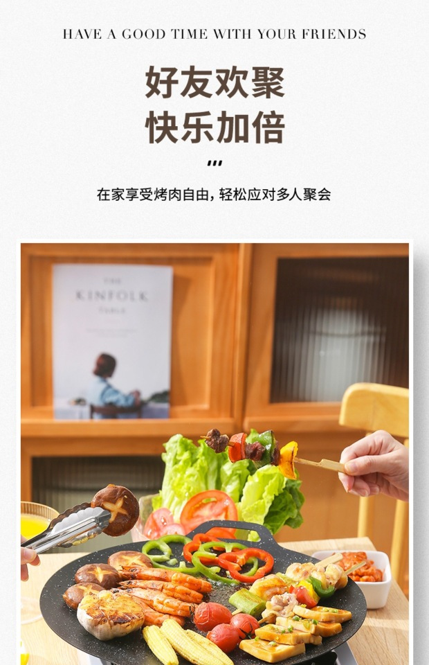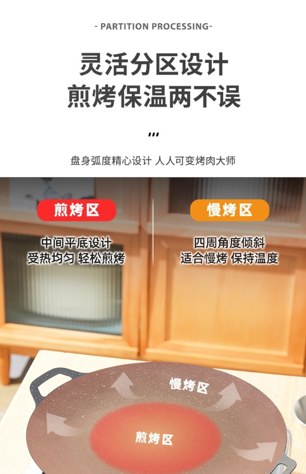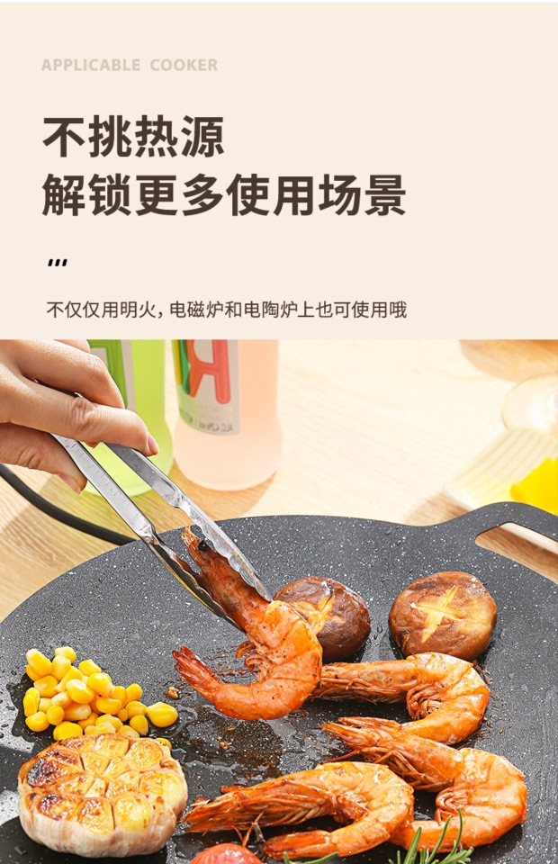 跨境烤盘户外露营烧烤盘韩式烤肉盘家用卡式炉铁板烧不粘烤盘煎盘