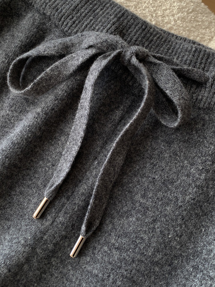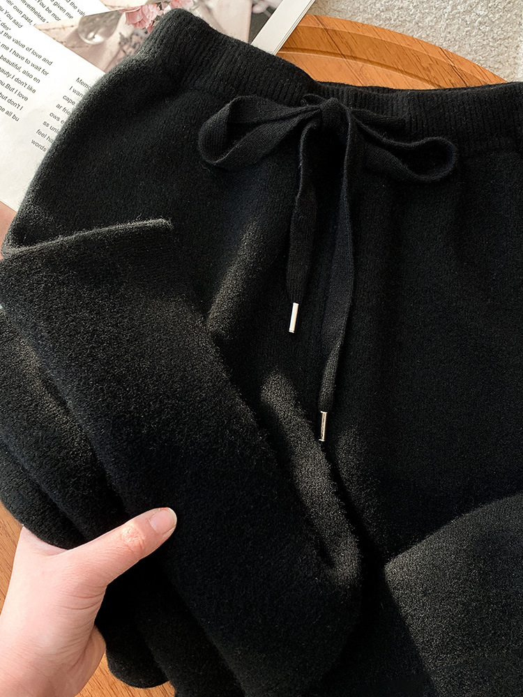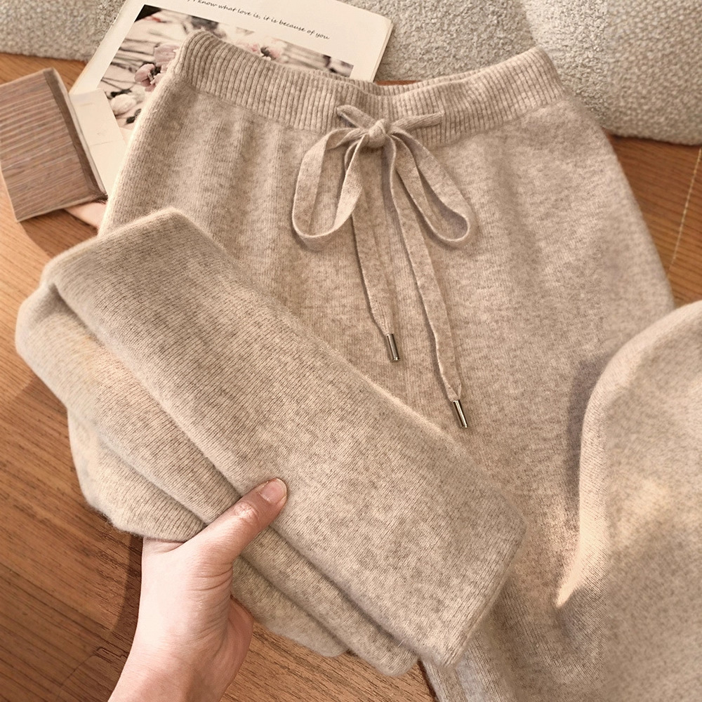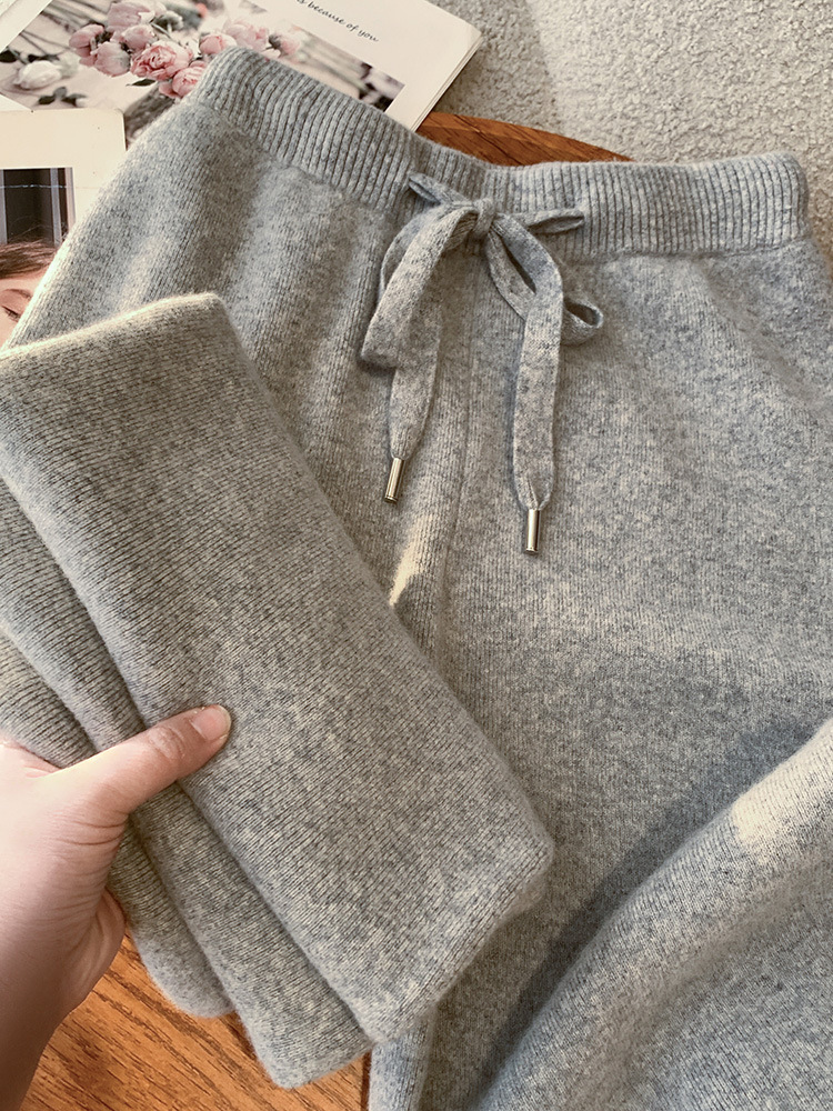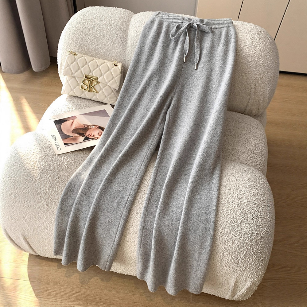 秋冬加厚柔软爆款穿搭仿羊绒裤女针织阔腿裤仿羊毛直筒灰色裤子