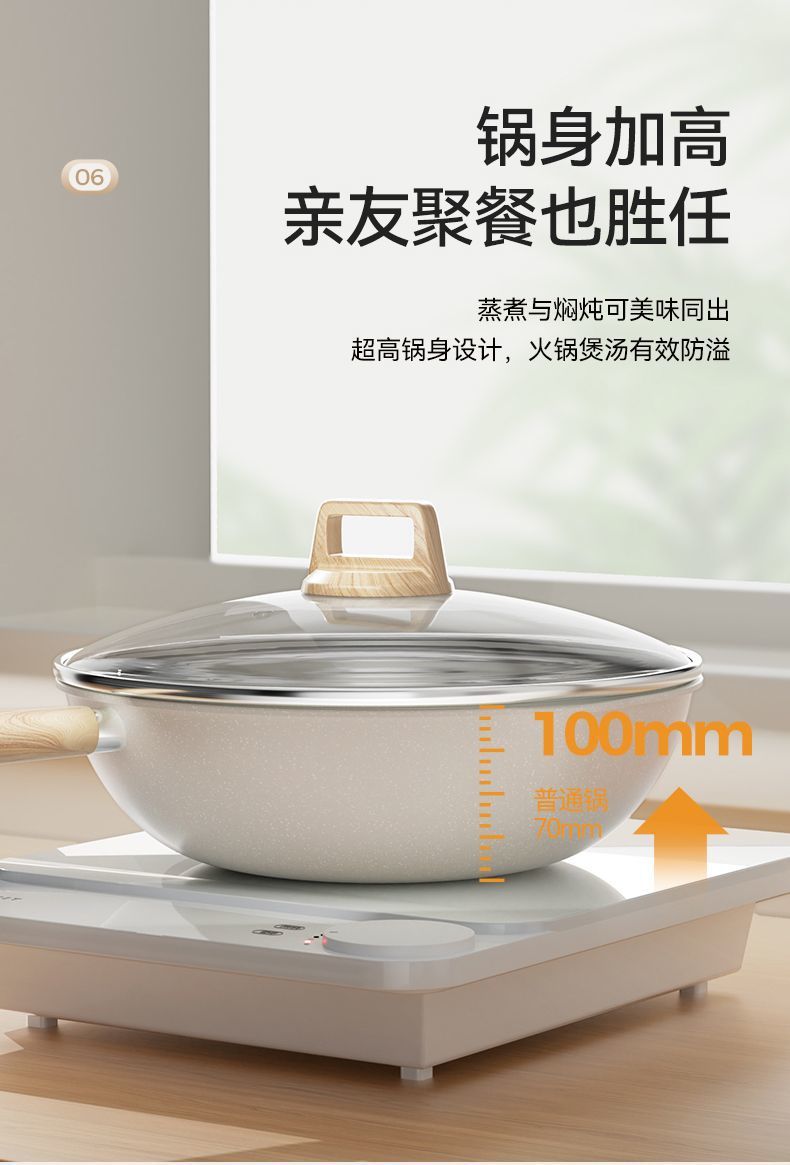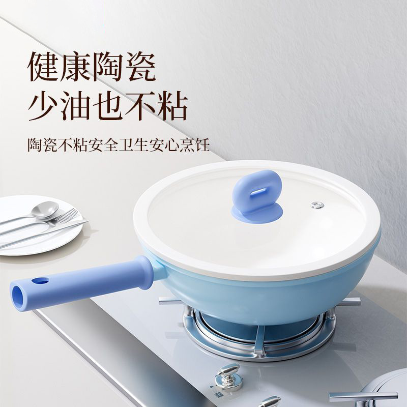 新款陶瓷釉炒锅加高平底煎炒锅家用0氟涂层不粘锅通用炉灶炒菜锅