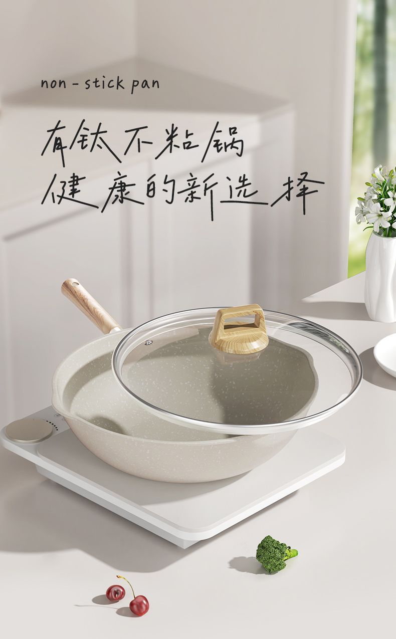 新商品のミルクホワイトはチタンを含んでいます。鍋0フッ素コーティングの炒め物鍋家庭用のフライパンは通用します。