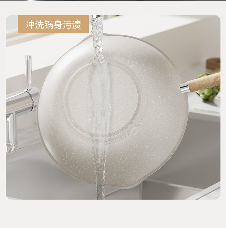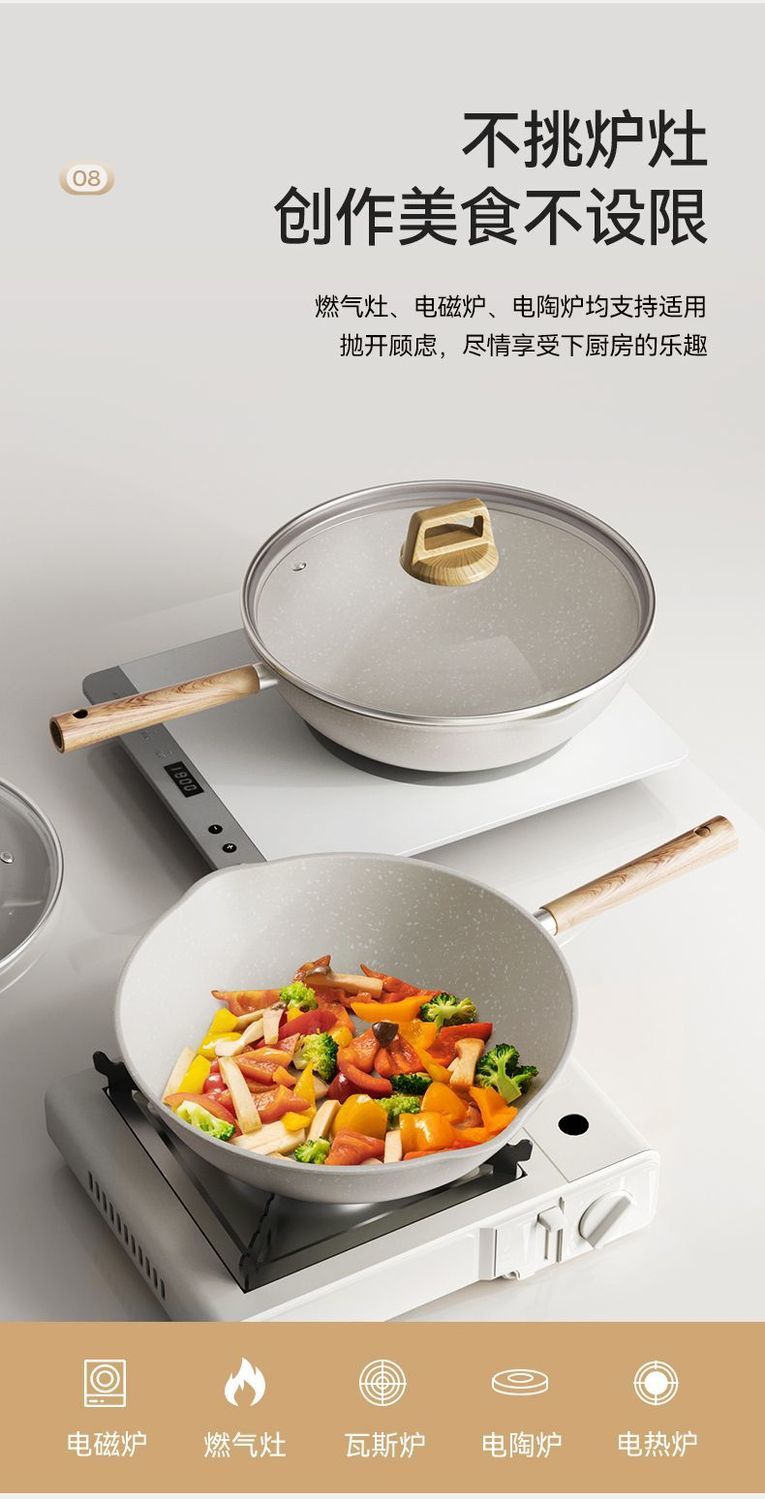 贝壳瓷炒锅家用不粘锅无油烟多功能平底锅煎锅炒菜锅燃气灶专用