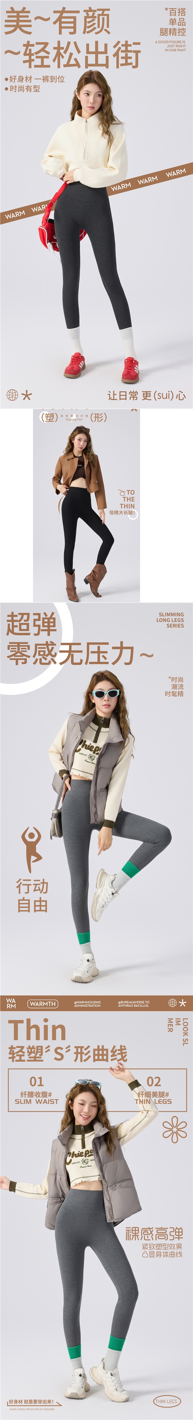 冬季新款加绒加厚百搭细条纹打底裤高腰收腹塑形显瘦无痕长裤