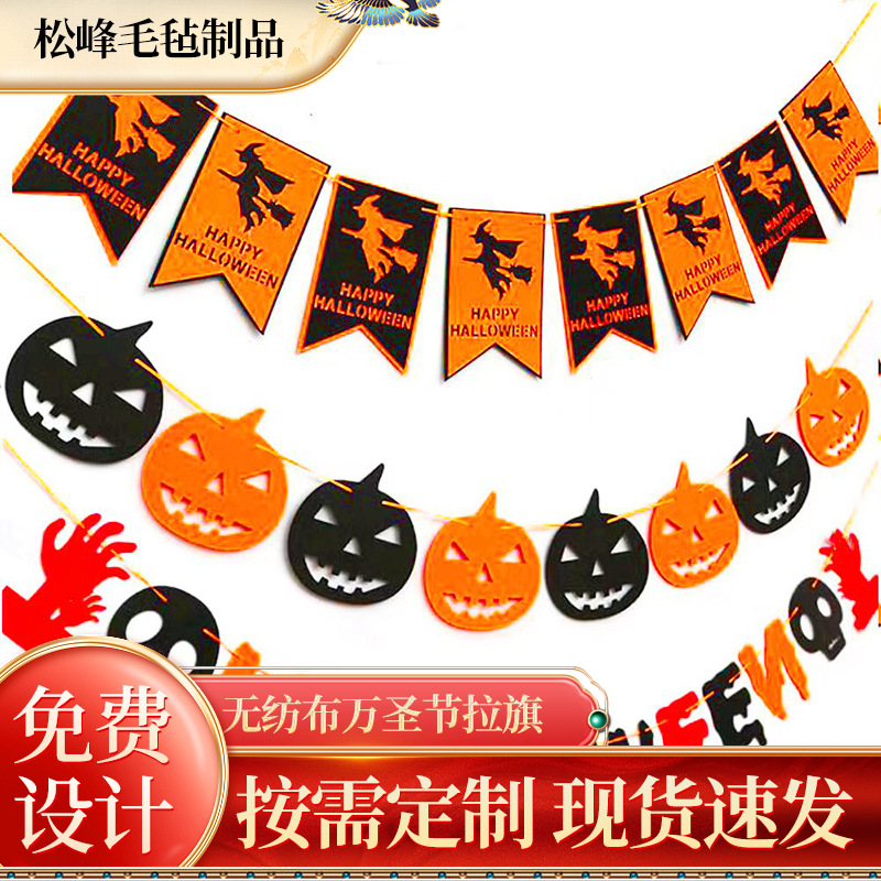 クロスボーダー不織布ハロウィーンプルフラッグ創意装飾シーン配置パーティー用品かぼちゃプルフラッグ