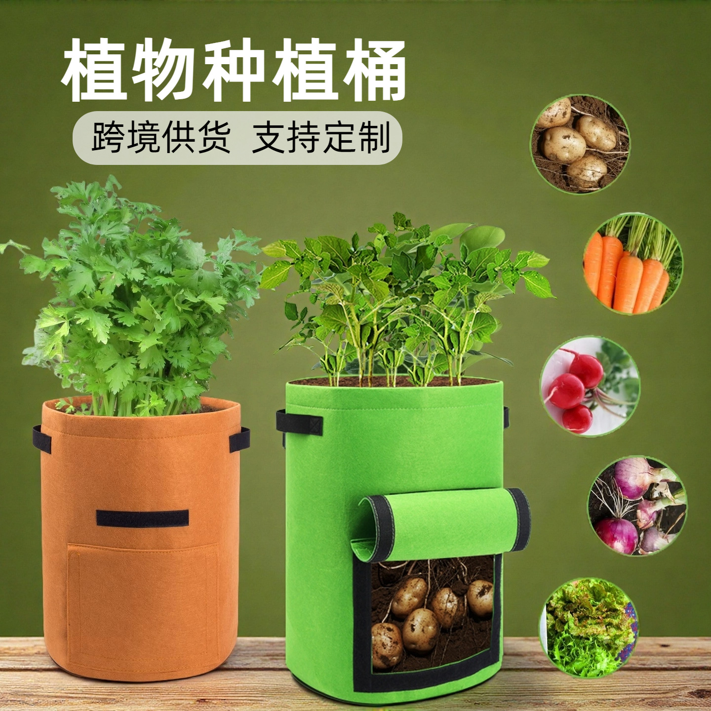 越境フェルト植栽桶、ジャガイモ栽培袋、不織布植物育成袋、野菜苗栽培桶、カスタムメイド