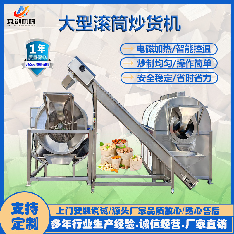 安創大型ドラム炒め機全自動ゴマ大豆炒め設備瓜子落花生全自動炒め鍋
