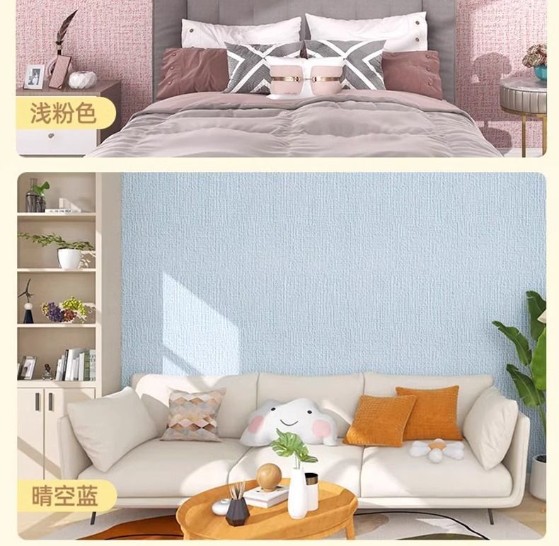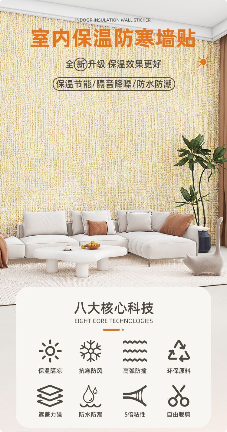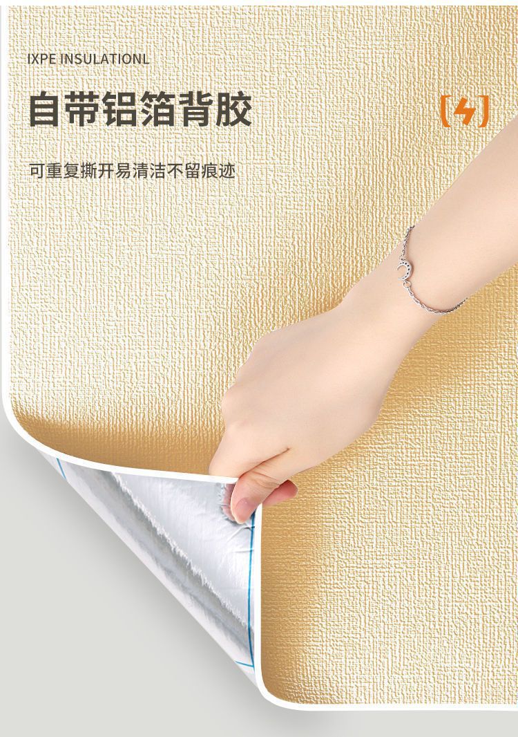超厚跨境保温墙贴卧室防霉防撞亚麻纹防寒隔热贴纸自粘家用背景墙